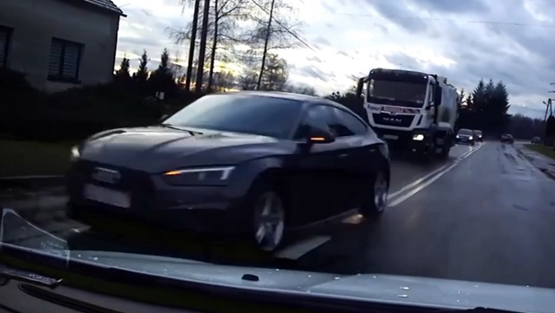 Nagranie trafiło do policjantów ze Śląska na skrzynkę "Stop agresji drogowej". Do uchwyconego na nim zdarzenia doszło 4 stycznia br. Na filmiku widać, jak niezważający na sytuację na drodze kierowca audi wyprzedza na podwójnej ciągłej ciężarówkę, niemal doprowadzając do zderzenia z samochodem jadącym z przeciwnego kierunku.