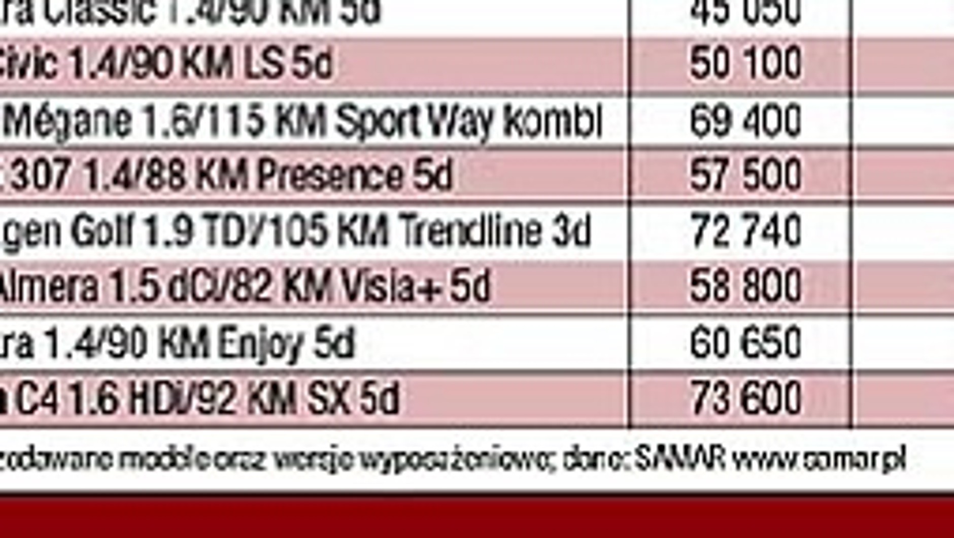 wyniosła 57 297 sztuk, to o 21,4 proc. mniej niż w 2004 r. Jeszcze w roku 1999 segment samochodów kompaktowych był największy na polskim rynku. Wówczas sprzedano 214,5 tys. aut tej klasy, co stanowiło ponad 34 proc. łącznej sprzedaży samochodów osobowych w Polsce. Oferta promocyjna na modele w segmencie jest szeroka.Po 11 miesiącach 2005 roku liderem segmentu jest Ford Focus. Sprzedaż tego modelu przekroczyła 9 tys. sztuk, (16-proc. udział w rynku). Na pozycji drugiej w rankingu ulokowała się Toyota Corolla. Jej wynik był o niecałe 500 sztuk gorszy w porównaniu z Focusem. Na miejscu trzecim znalazł się Opel Astra Classic. Tym razem różnica w porównaniu ze sprzedażą Toyoty Corolli wyniosła niemal 2 tys. sztuk. Również 2 tys. sztuk różnicy istnieje pomiędzy Oplem a zajmującą kolejną pozycję Hondą Civic.Więcej: http://www.samar.pl