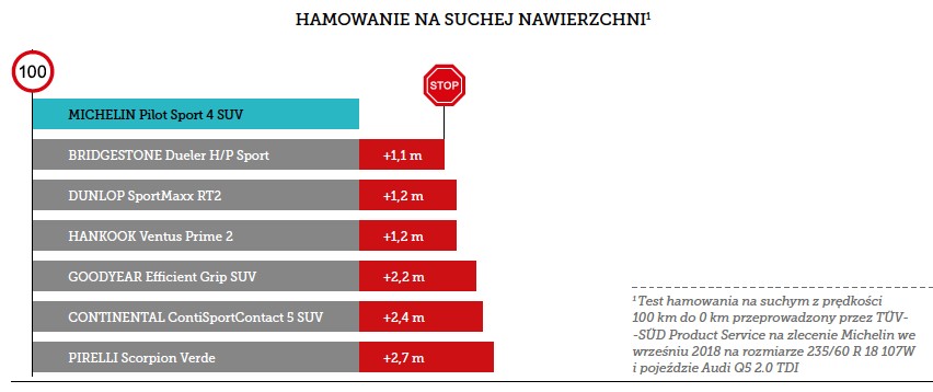 Firma Michelin ponownie stanęła na wysokości zadania. Debiut opon Pilot Sport 4 SUV może mocno namieszać na rynku. Zapewnienia francuskiego producenta potwierdziły już pierwsze testy wykonane przez niemieckie organizacje TÜV-SÜD i DEKRA. Nowe opony okazały się najlepsze we wszystkich najważniejszych kategoriach. Są numerem 1 na suchej, jak i mokrej nawierzchni.
