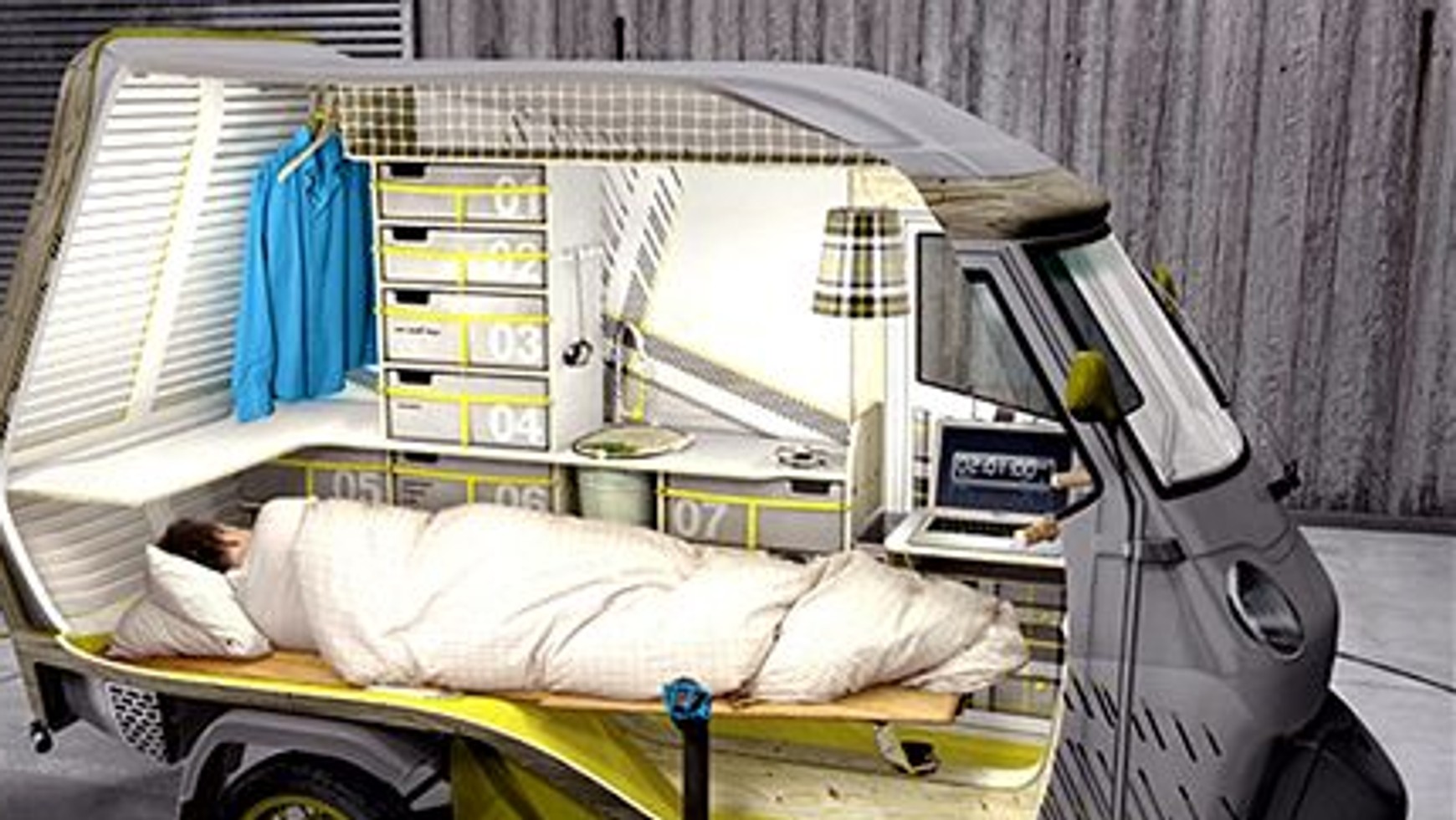 Po zakończeniu jazdy zmęczony kierowca rozkłada łóżko. Jak już się wyśpi to może na miejscu skorzystać z kuchenki turystycznej i zjeść smaczny posiłek. Jest miejsca na garderobę, a podczas koczowania na kempingu możemy także wysuszyć pranie (po podniesieniu tylnej klapy).