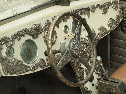 Ale jeszcze większe, a właściwie największe robi nadwozie tego kosmicznego auta. Wykonano je z włókien szklanych i pokryto lakierem w kolorze kości słoniowej. Jednak to nie wszystko, Nautilus to naprawdę imponujący pojazd – głównie dzięki imponującym zdobieniom, których nie można nie zauważyć.