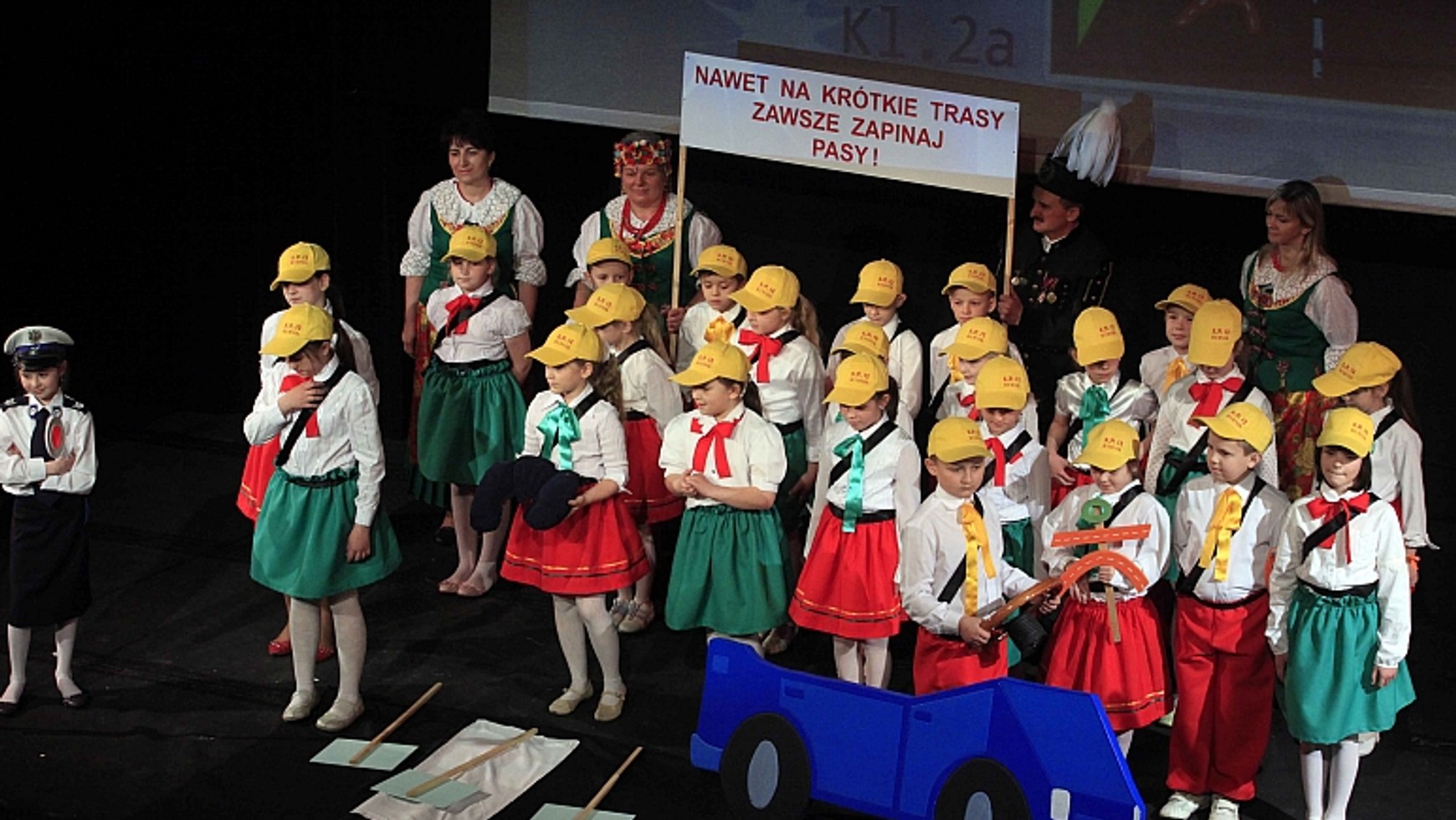 Zwycięska klasa w swoim kilkuminutowym programie artystycznym skupiła się na pasach bezpieczeństwa. Uczniowie przypomnieli, że należy je zawsze zapinać, niezależnie od długości pokonywanej trasy, prędkości jazdy czy innych zabezpieczeń w samochodzie. Dzieci pokazały też skutki, jakie może przynieść jazda bez pasów i jasno zadeklarowały "wybieramy życie"!