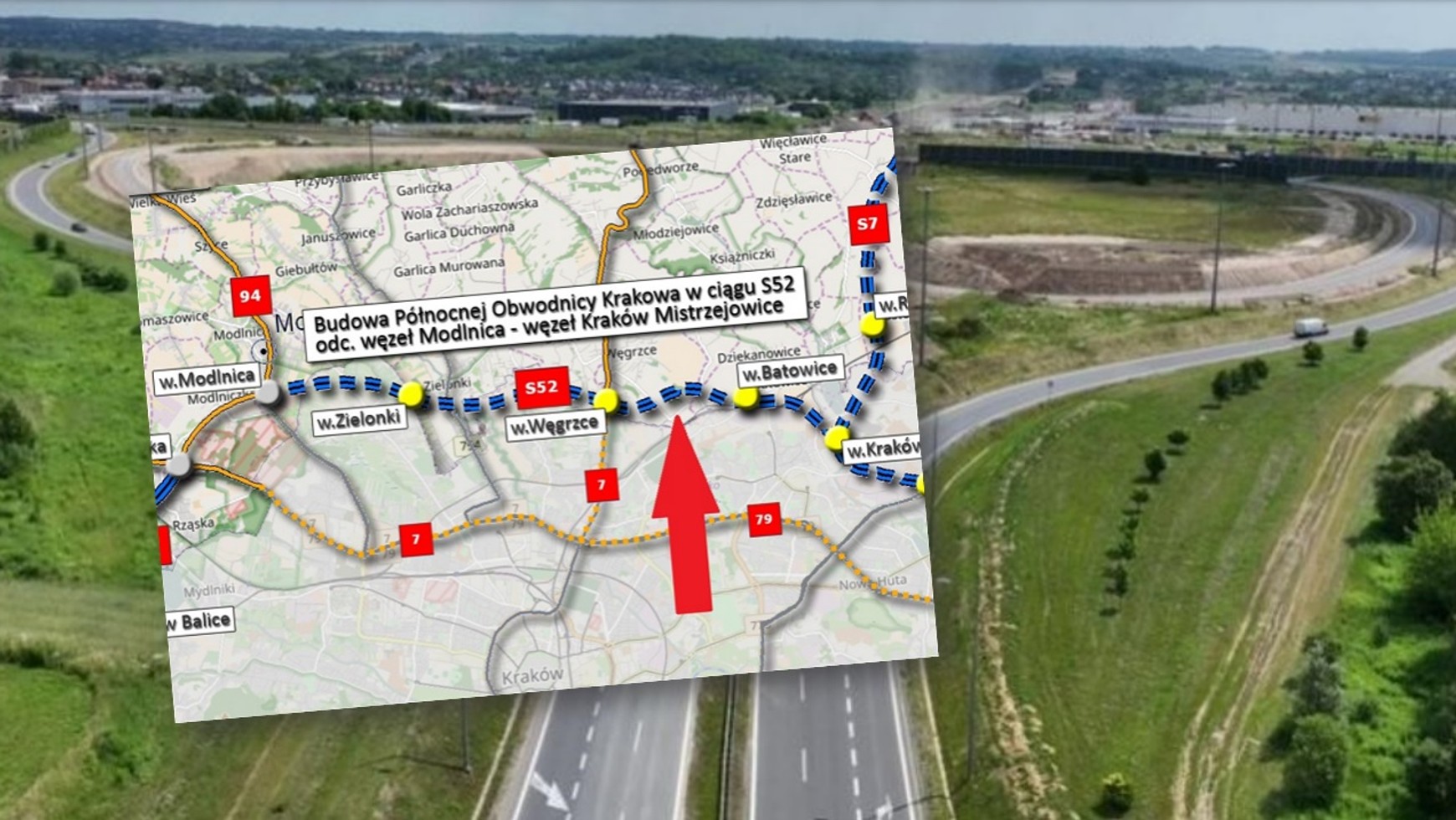 Budowa blisko 12,5-kilometrowej Północnej Obwodnicy Krakowa ruszyła w lipcu 2020 r. Ze względu na gęstą zabudowę w ciągu trasy S52 powstają dwa tunele (pod Zielonkami i w Batowicach), a także wiadukty i estakady. W ramach inwestycji, której koszt to 1,43 mld zł, budowane są też węzły drogowe Modlnica, Zielonki, Węgrzce i Batowice.