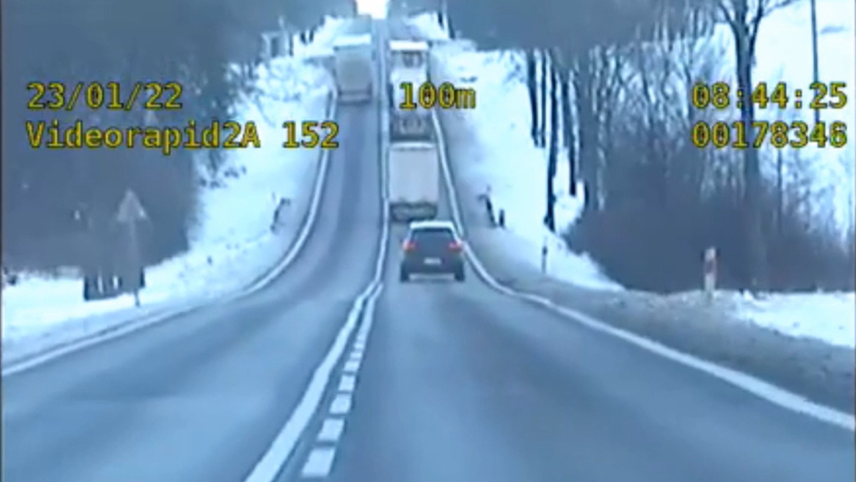 W niedzielę 23 stycznia o godz. 8.45, policjanci z grupy Speed na drodze krajowej nr 8 w rejonie miejscowości Szaciłówka, zatrzymali TIR-a, którego kierowca wykonał manewr nieprawidłowego wyprzedzania. Kierujący pojazdem Litwin nie zwracając uwagi na bezpieczeństwo, zdecydował się wyprzedzić inną ciężarówkę i traktor tuż przed wierzchołkiem wzniesienia. Nie zastosował się przy tym do podwójnej linii ciągłej i zakazu wyprzedzania. Policjanci ukarali go mandatem w wysokości 5 tys. zł.