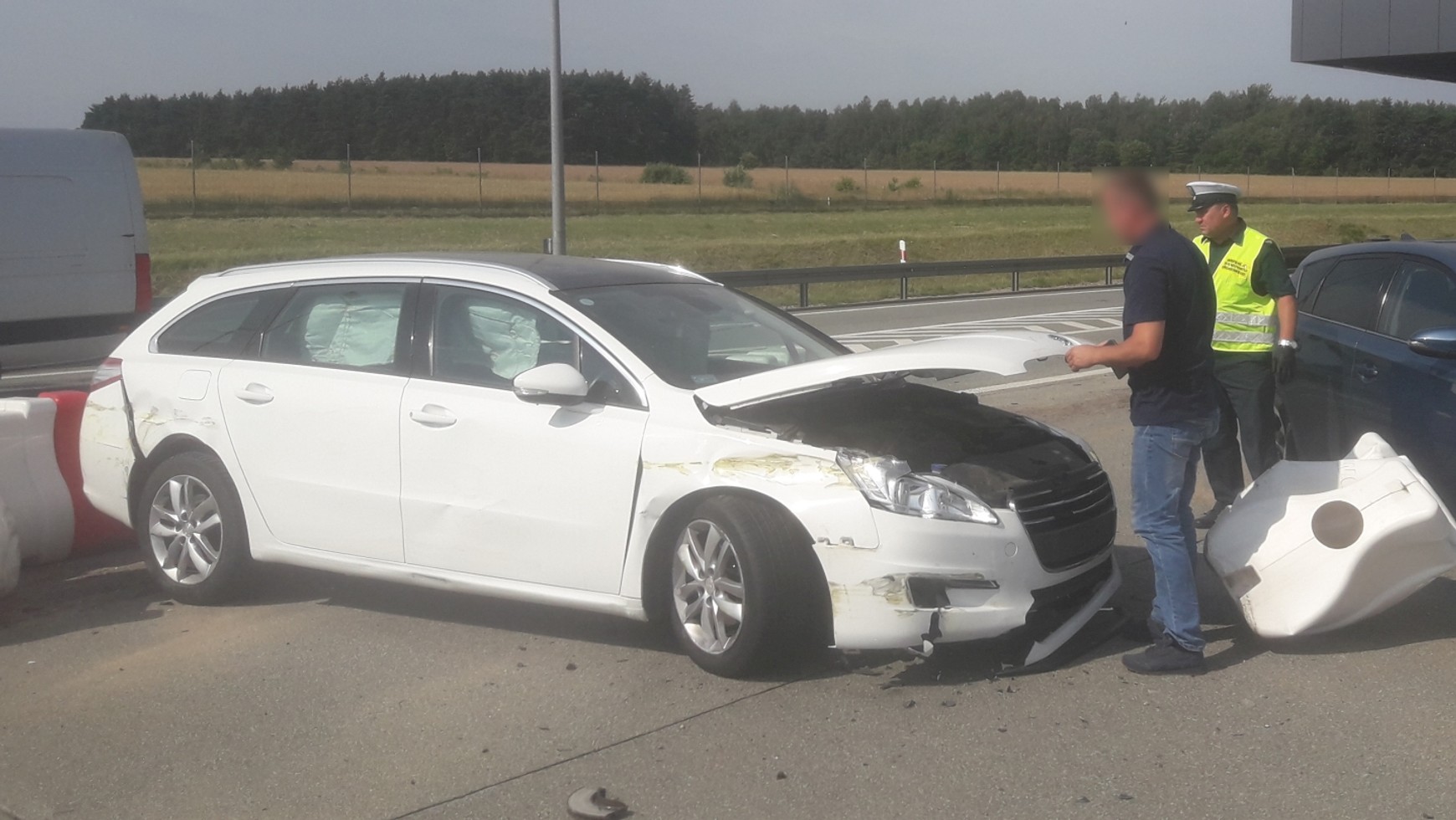 Otwarte bramki na trasie S8 (dopiero w przyszłości będą służyć jako punkt poboru opłat) okazały się zaskakującą przeszkodą. Kierujący osobowym Peugeotem 508 najwyraźniej przecenił swoje umiejętności, gdyż próba szybkiego przejazdu skończyła się dość groźną kraksą. Kierowca samochodu nie zmieścił się na wyznaczonym pasie ruchu i z dużą prędkością uderzył w metalowe bariery ochronne.