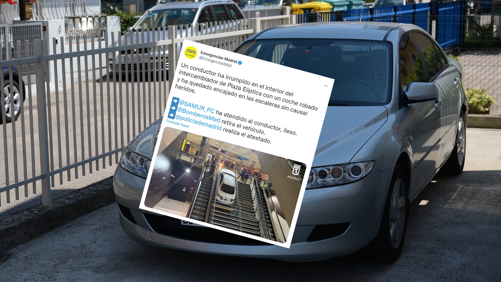 Złodziej został jednak szybko ujęty. Wjechał bowiem na stację metra przez wjazd dla autobusów, prowadzący z autostrady A-42, przebił się przez szklane drzwi, a potem najprawdopodobniej usiłował wydostać się schodami. Mazda 6 to jednak nie terenówka. Auto utknęło podczas próby podjazdu.