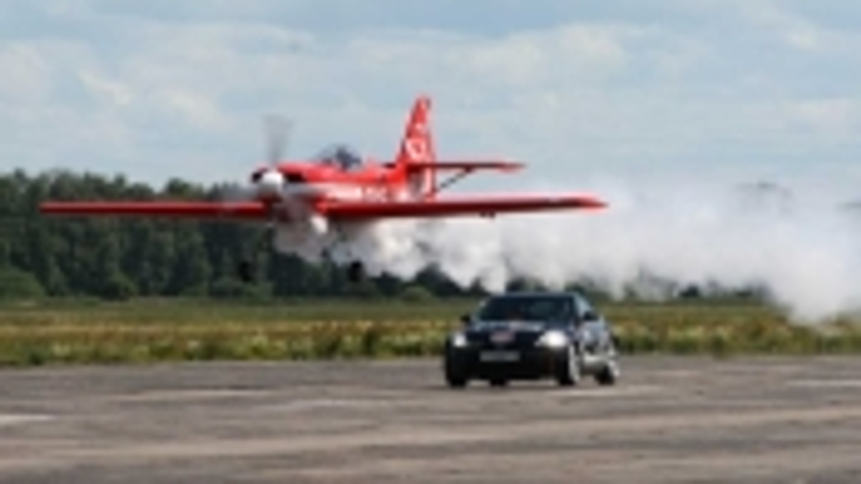Zaprosiliśmy na wyścig sporo dziennikarzy prasowych i telewizyjnych, nie chcieliśmy więc, by byli świadkami jakiegoś nieciekawego wydarzenia. Stąd długotrwałe próby i testy w dniu poprzedzającym imprezę. Gdy okazało się, że Zlin prowadzony przez Wojtka Krupę oblatuje czworobok naszego toru w 40 sekund, a ja, ryzykując dość mocno, w 55 sekund objeżdżam go Nissanem, uznaliśmy, że trzeba wprowadzić współczynnik handicapowy. Dlaczego? Oczywisty powód jest taki, że pomimo identycznej mocy silników, obydwa środki transportu znacząco różnią się masą - samolot waży dokładnie połowę tego co samochód. Nissan, który do jazdy po normalnych drogach nadaje się świetnie, ma fantastycznie harmonijne podwozie z prawdziwym skokiem zawieszenia (dziś rzadkość), uczciwy i precyzyjny układ kierowniczy, mocne hamulce i silnik o korzystnej charakterystyce momentu obrotowego, a na suchej nawierzchni podejmuję się powalczyć nim z Subaru Imprezami, tutaj ma problemy.