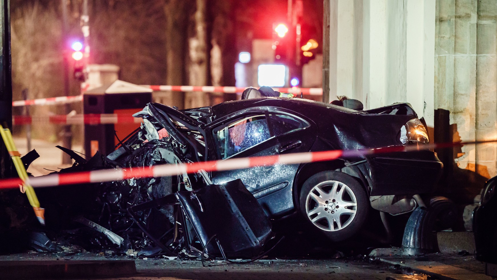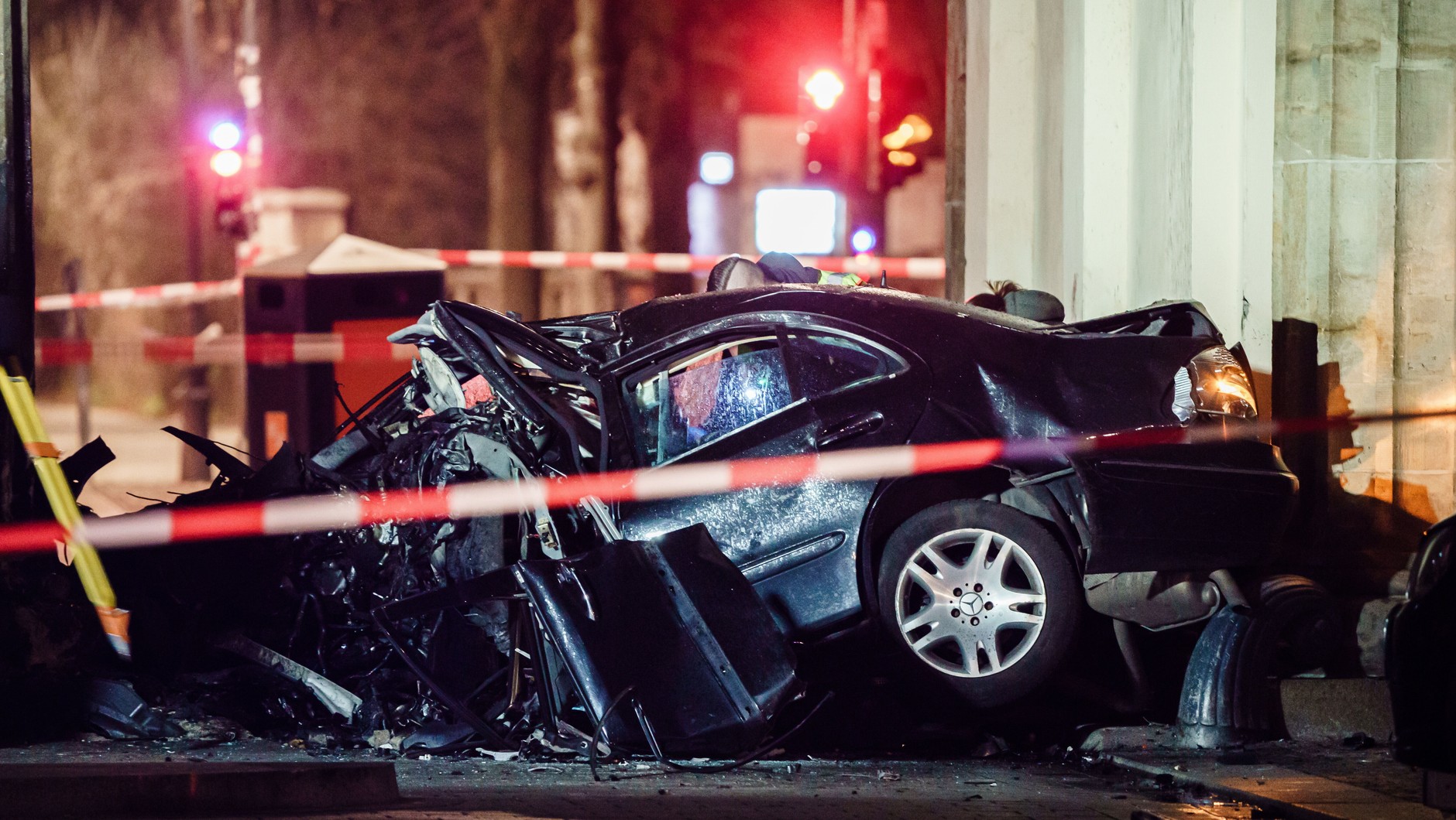 Auto uderzyło w jedną z potężnych kolumn Bramy Brandenburskiej.