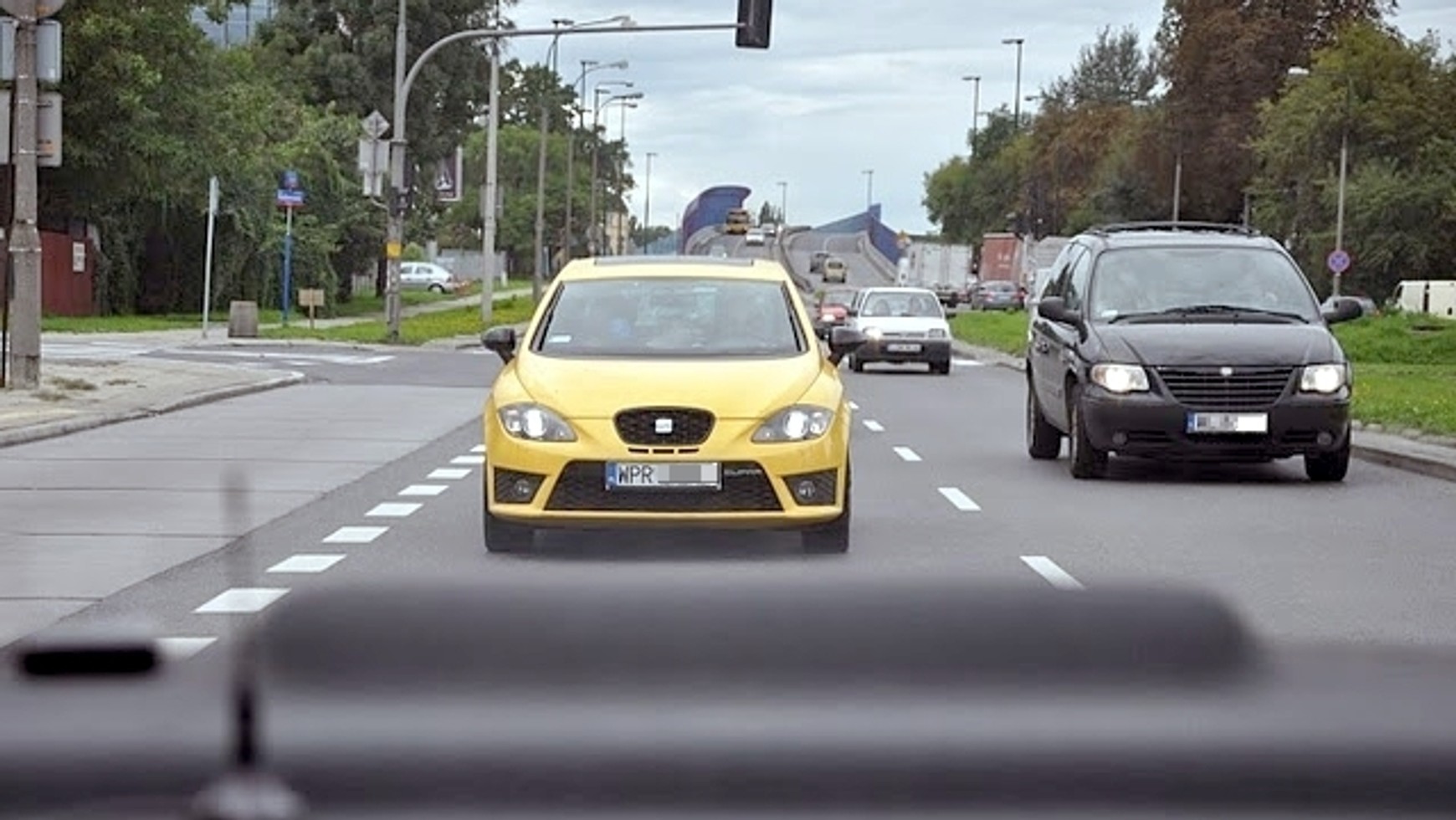 Nieoznakowany Seat Leon Cupra to postrach piratów drogowych. Ma 288 KM i może przekroczyć 250 km/h. Na jego pokładzie zamontowano klasyczny wideorejestrator oraz system pozwalający na mierzenie prędkości aut nadjeżdżających z… naprzeciwka! Radiowóz był testowany przez funkcjonariuszy drogówki z wielu komend w kraju. Początkowo auto technicznie nie odbiegało od produkcyjnej Cupry. Potężne hamulce, sztywne zawieszenie oraz silnik 2.0 TFSI o mocy 240 KM umożliwiały sprawne zatrzymywanie kierowców łamiących przepisy. W trakcie jednej z przerw z służbie Leona poddano tuningowi elektronicznemu, który wykrzesał z turbodoładowanego silnika z bezpośrednim wtryskiem paliwa dodatkowe 48 KM i 100 Nm. Pomiar na hamowni wykazał, że Leon osiąga 288,3 KM przy 5480 obr./min. oraz 438 Nm przy zaledwie 2725 obr./min. Podniesione parametry jednostki napędowej skróciły czas rozpędzania od 0 do 100 km/h do niecałych sześciu sekund oraz pozwalają na przekraczanie 250 km/h. "Wyczyny" kierowców łamiących przepisy rejestruje sprzęt przygotowany przez firmę PolCam. Sercem systemu jest rejestrator, który nagrywa obraz z kamery umieszczonej przy lusterku. Zatrzymani kierowcy mogą obejrzeć swoje wykroczenia na dużym wyświetlaczu. W celu dokonania pomiaru załoga radiowozu musi przez krótką chwilę utrzymywać prędkość, z jaką porusza się nagrywany pojazd. Wideorejestrator PolCamu wyświetla bowiem prędkość radiowozu, a nie namierzanego pojazdu. W niedalekiej przyszłości policja będzie dysponowała jeszcze nowocześniejszymi systemami pomiaru prędkości. Testowano je na pokładzie Leona. Seat został wyposażony w radar, który informuje o prędkości pojazdu jadącego nawet kilkaset metrów przed radiowozem - bez konieczności zbliżania się i zrównywania tempa jazdy. To jednak nie koniec... Radar zamontowany w Leonie informuje także o prędkości aut nadjeżdżających z… naprzeciwka! Podczas służby wideorejestrator jest stale włączony, więc kierowcę jadącego z niedozwoloną prędkością będzie można ukarać, jeżeli oko kamery uchwyciło przednią tablicę rejestracyjną pojazdu.