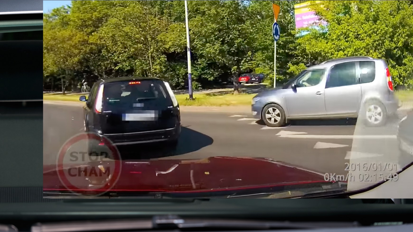 W opisie nagrania z 18 czerwca 2022 r. jest wzmianka o tym, że kierowca Forda zatrzymuje się na środku ronda, ponieważ ma pretensje do kierowcy Skody o to, że ten za szybko zbliżał się do skrzyżowania z ruchem okrężnym. Ja widzę to odrobinę inaczej. W zasadzie to nie wykluczam próby wyłudzenia odszkodowania.