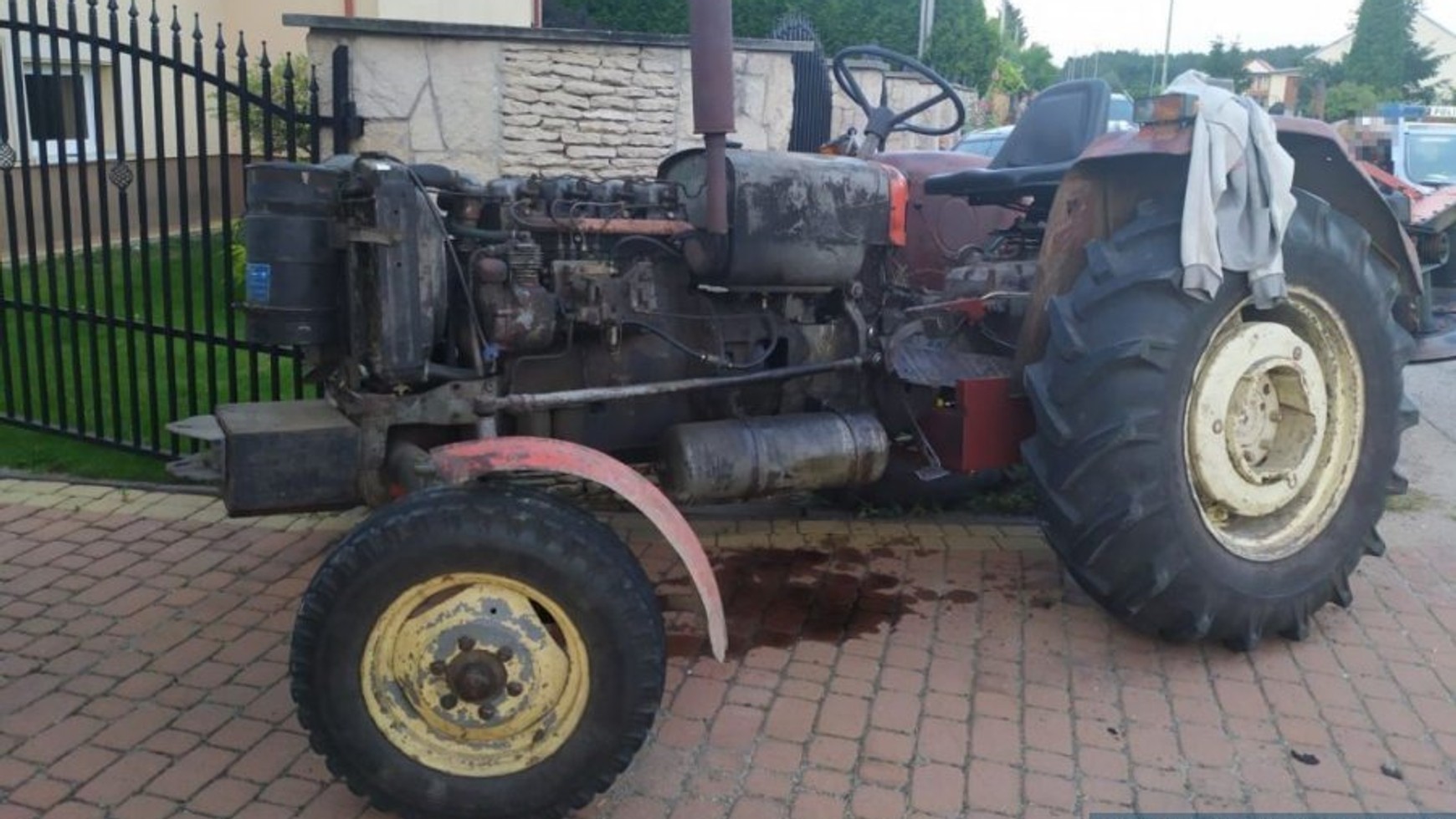 Pokrzywdzony „nie skorzystał z okazji” i powiadomił Policję. W trakcie badania stanu trzeźwości 32 – letni traktorzysta „wdmuchał” ponad 2,6 promila alkoholu. Stan techniczny ciągnika, którym się poruszał pozostawiał wiele do życzenia. Mundurowi stwierdzili między innymi niesprawność układu kierowniczego, co w połączeniu ze stanem psychofizycznym kierującego mogło doprowadzić do tragedii. W tym przypadku skończyło się na uszkodzeniu zaparkowanego przy ogrodzeniu auta i samego ogrodzenia.