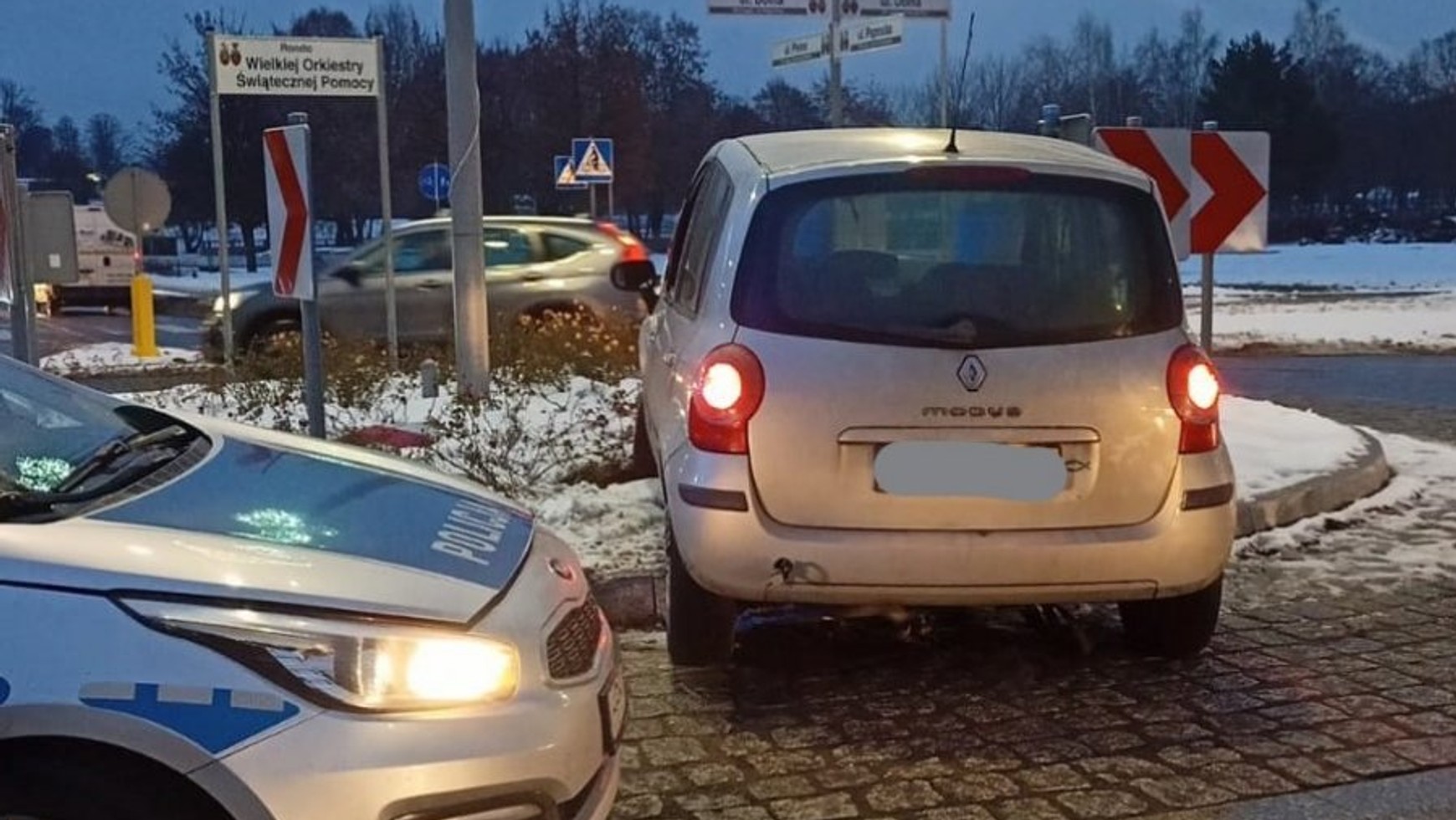 Jednym z takich nieodpowiedzialnych kierowców jest 62-letni mieszkaniec powiatu zduńskowolskiego. Mężczyzna prowadzący Renault nie zastosował się do zasad obowiązujących na skrzyżowaniu z ruchem okrężnym i próbował przejechać przez rondo na wprost. Próba nie powiodła się, ponieważ wjechał w znak drogowy, na którym jego auto po chwili zawisło.