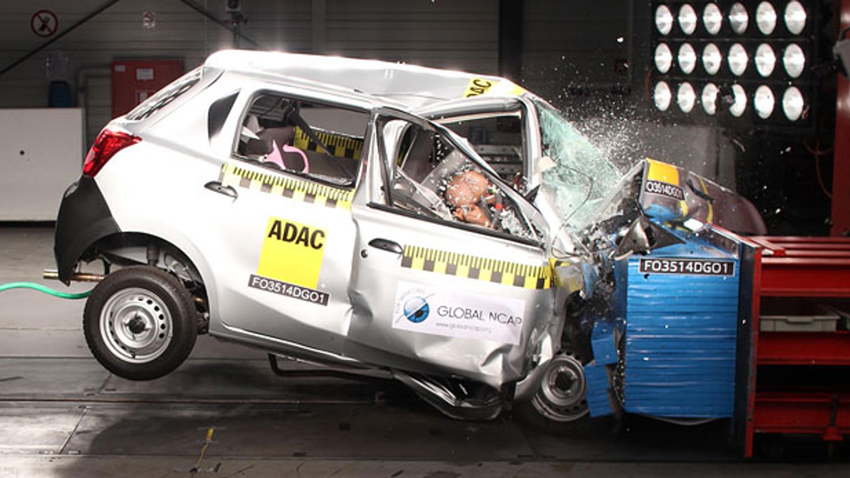 Organizacja Global NCAP poddała jeden z seryjnych egzemplarzy próbie zderzeniowej przy prędkości 64 km/h. Wynik okazał się wręcz tragiczny, bo mały Datsun GO nie uzyskał nawet jednej gwiazdki, co oznacza, że jest to auto wyjątkowo niebezpieczne dla pasażerów podróżujących na przednich siedzeniach.