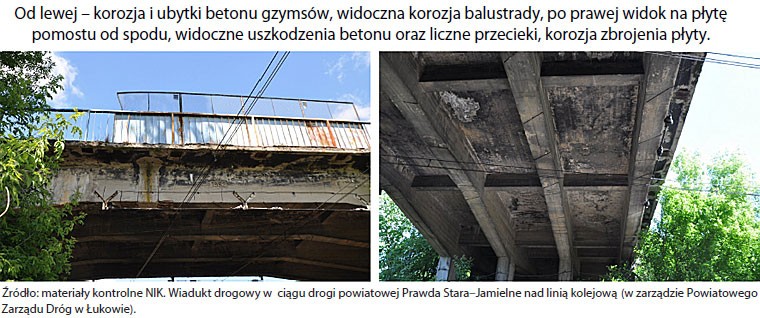 NIK skontrolował także 139 obiektów mostowych i przepustów. 45 z nich stwarzało zagrożenie ruchu publicznego lub życia. Sześć groziło katastrofą budowlaną.