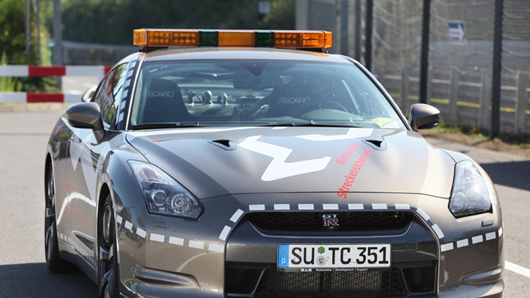 GT-R na zdjęciu to samochód bezpieczeństwa wykorzystywany na torze Nurburgring.