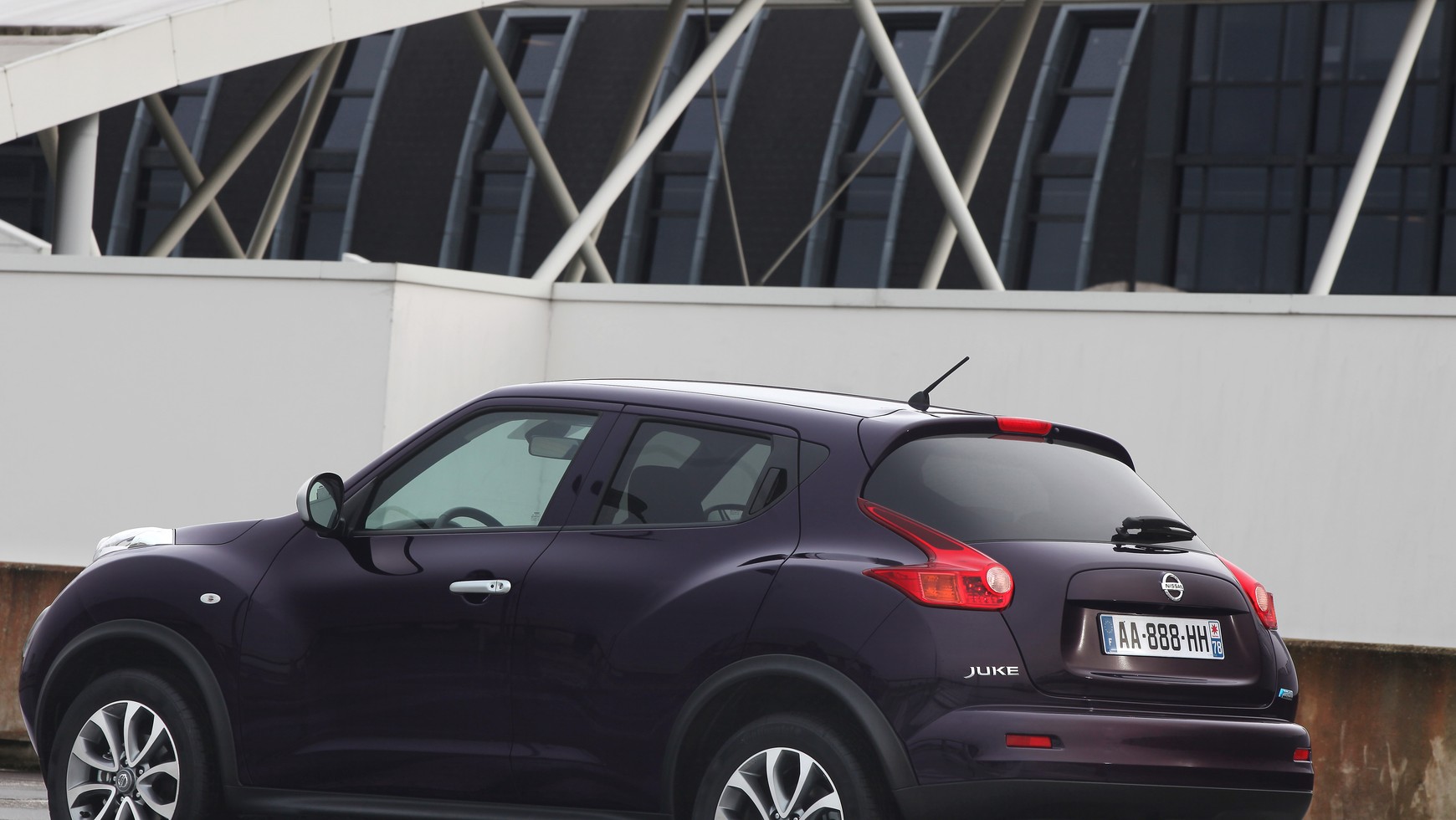 Z zewnątrz Juke Shiro można rozpoznać po 17-calowych aluminiowych obręczach kół, matowo srebrnym wykończeniu klamek i lusterek bocznych oraz błyszczącym słupku B. Poza standardowymi lakierami, Juke Shiro jest oferowany jest w specjalnym kolorze Nightshade - czyli głębokim fiolecie zarezerwowanym tylko dla tej wersji.