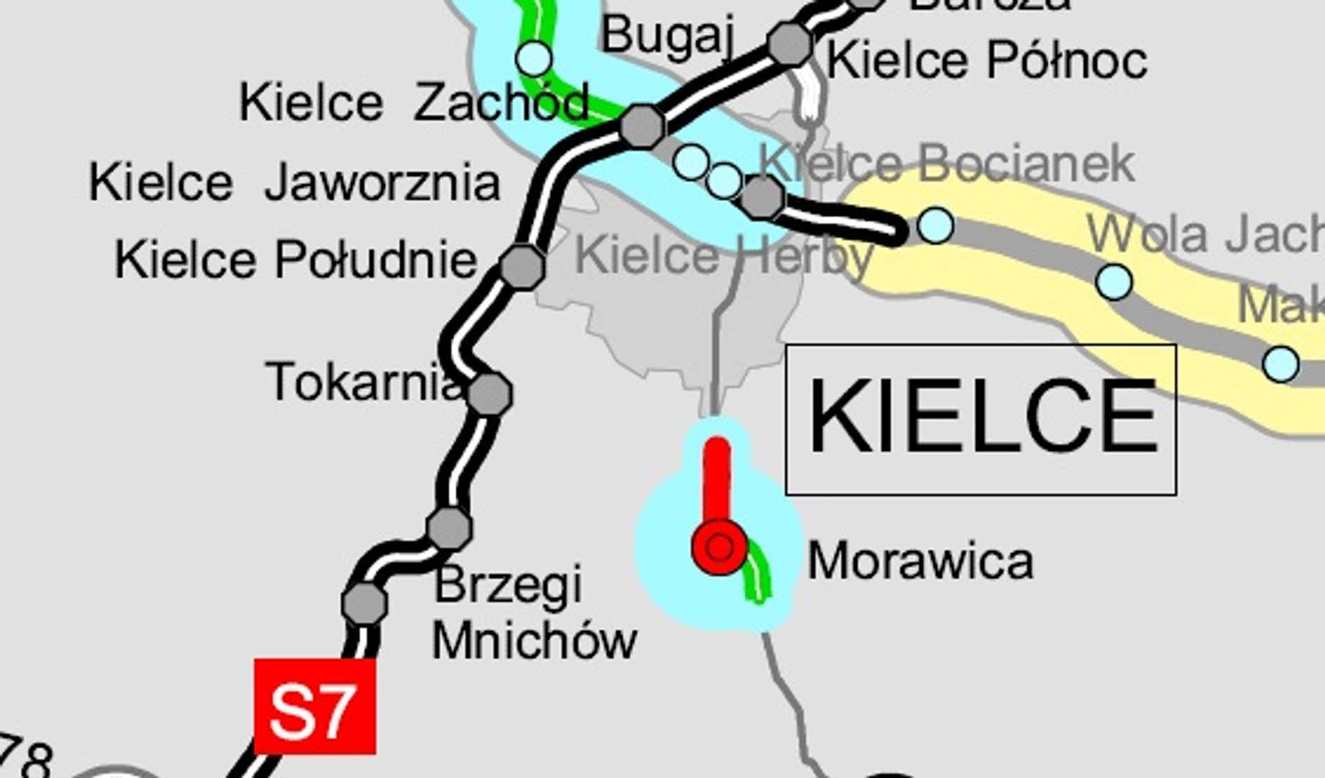 Odcinek planowo ma być oddany do użytku w II kwartale 2022 r.<br/><br/>- DK73 obwodnica Morawicy i Woli Morawickiej (granica miasta Kielce – Brzeziny/Morawica) (4,2 km)