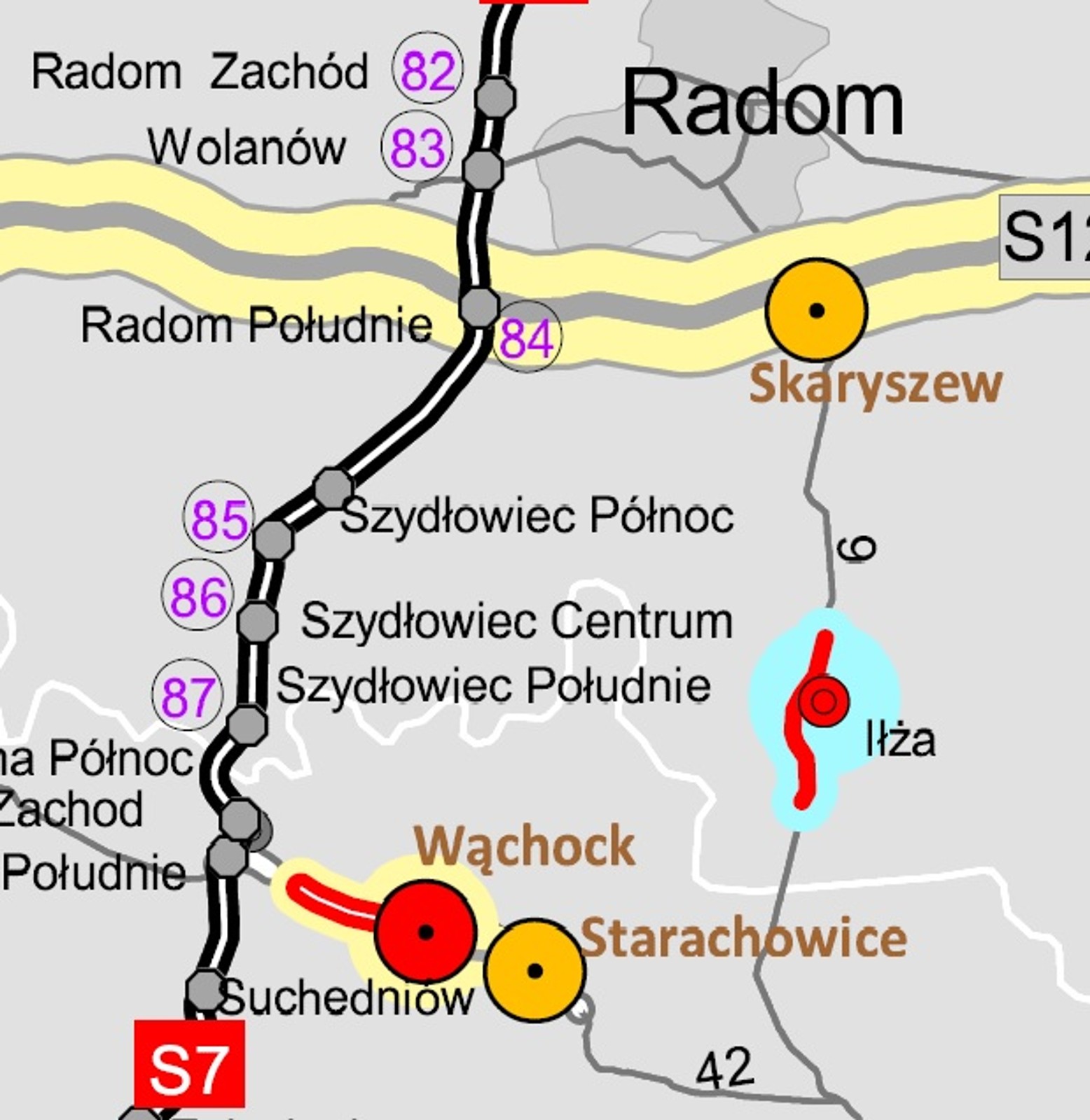 - A1 Kamieńsk – Radomsko (16,7 km)