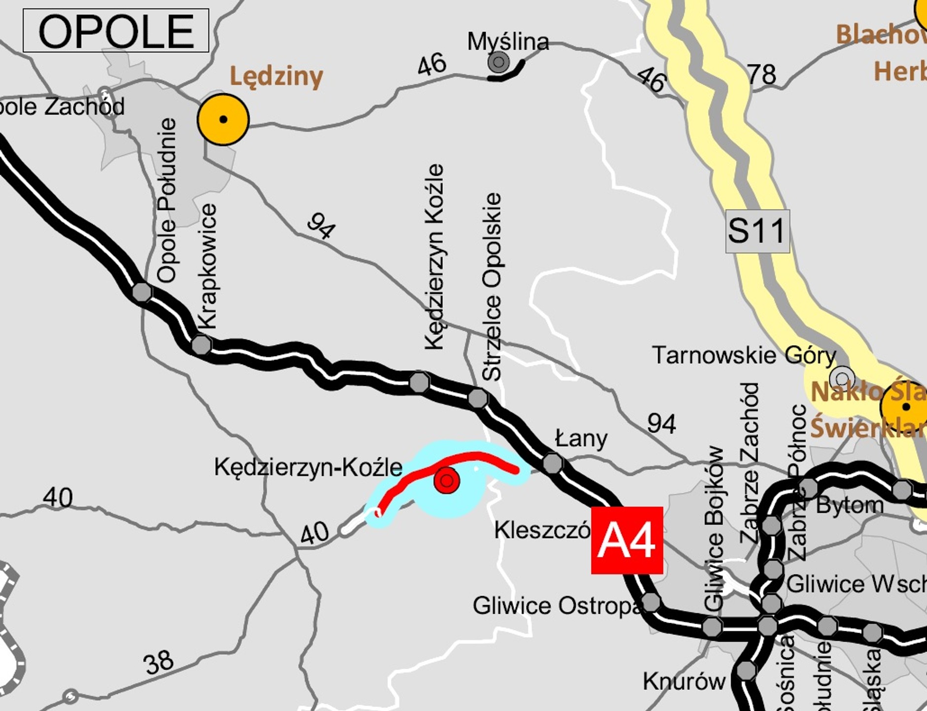 Odcinek planowo ma być oddany do użytku w IV kwartale 2022 r.<br/><br/>- DK40 obwodnica Kędzierzyna-Koźla (etap 2) (14,33 km)