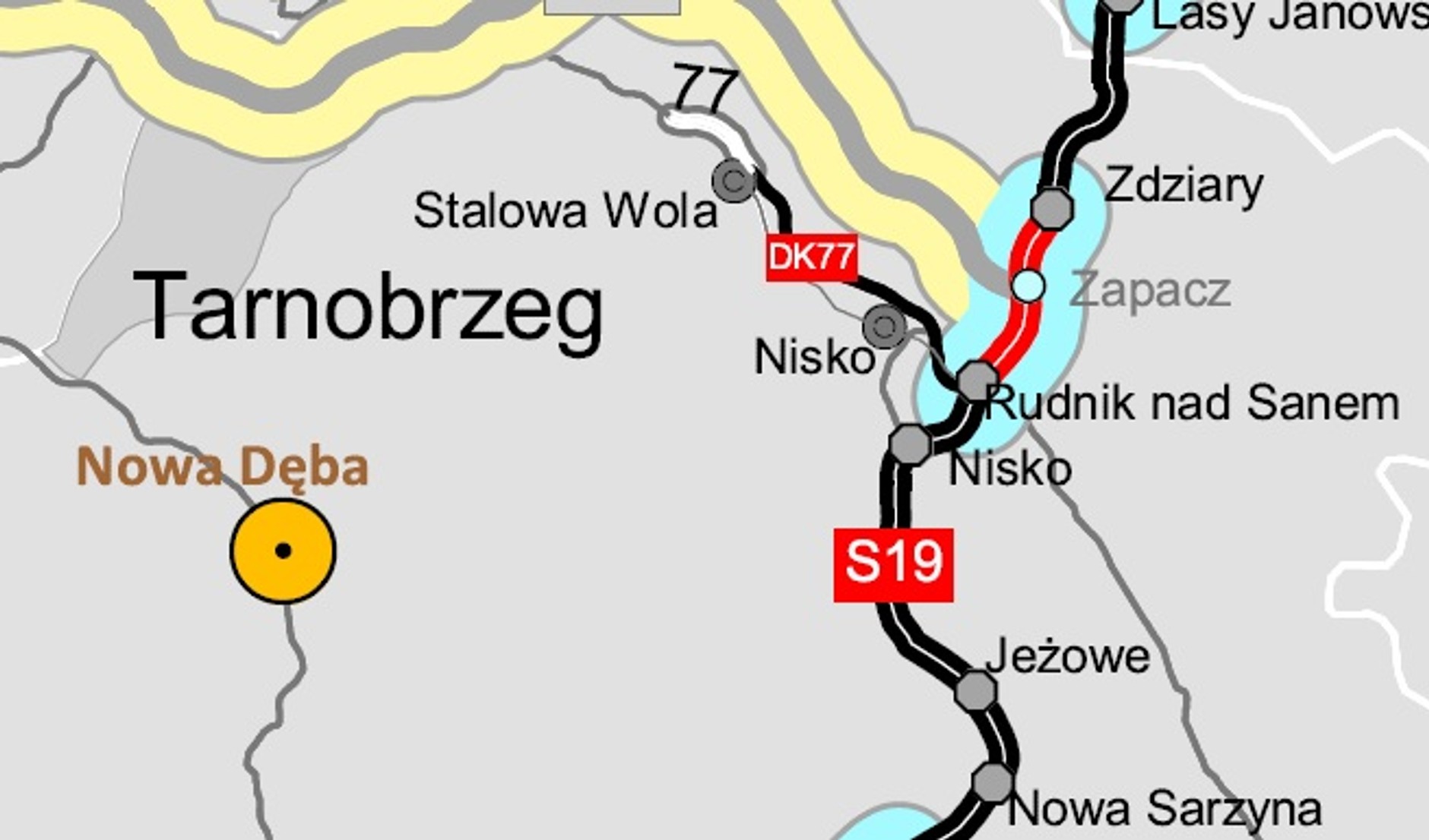 - S19 Nisko Południe — Jeżowe (dotychczasowa nazwa Podgórze) (11,5 km)
