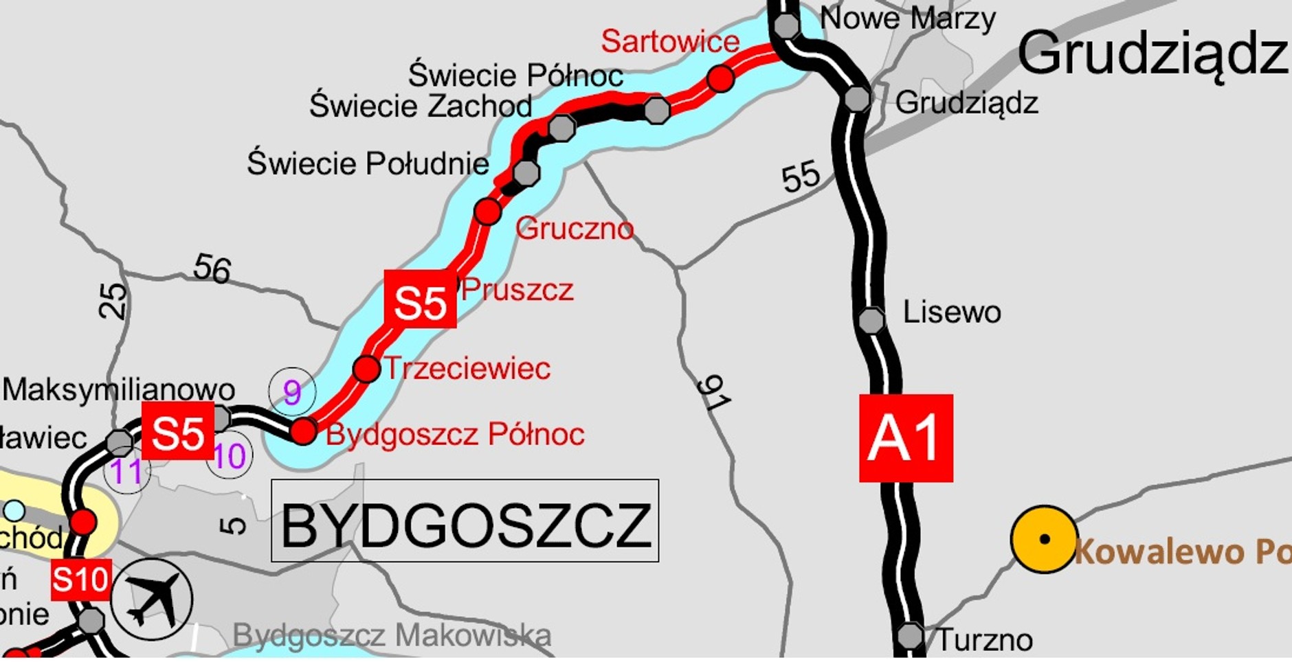 - S5 Świecie Południe – Bydgoszcz Północ (22,4 km)