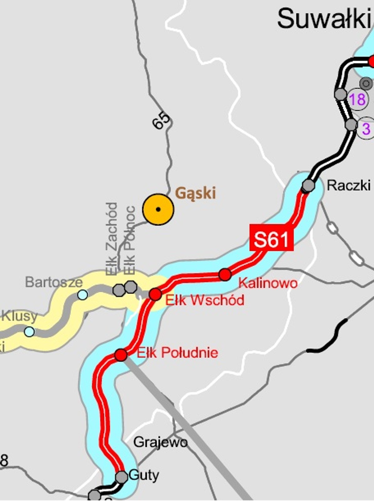 - S61 Ełk Południe — Wysokie (Ełk Wschód) (22,95 km)