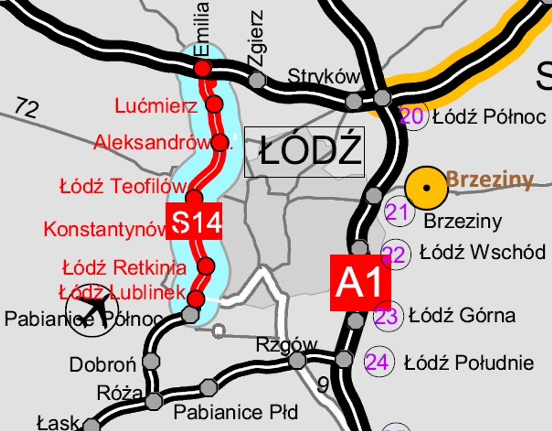 Odcinek planowo ma być oddany do użytku w II kwartale 2022 r.<br/><br/>- S14 Łódź Lublinek — Łódź Teofilów (12,2 km)