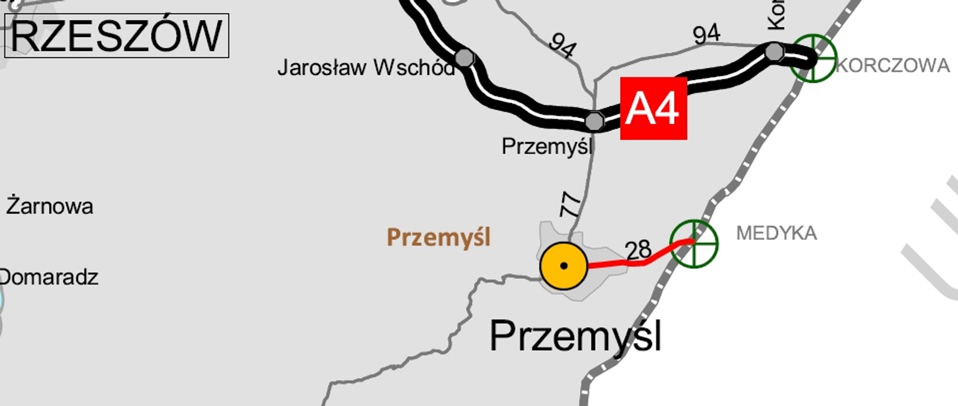 Odcinek planowo ma być oddany do użytku w III kwartale 2022 r.<br/><br/>- DK28 Przemyśl — Medyka (7,05 km)