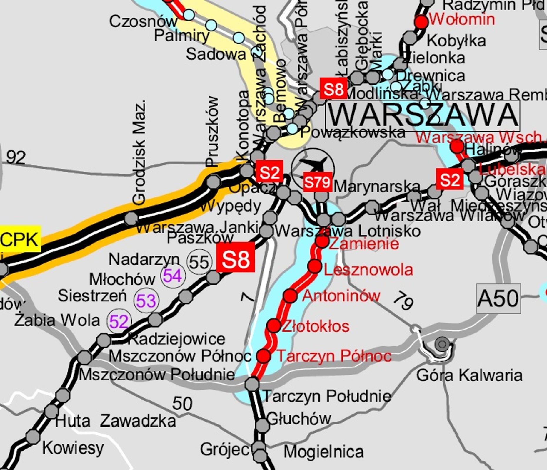 - S7 Warszawa Lotnisko — Lesznowola (6,5 km)