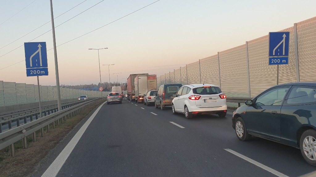 WIdzimy sytuację „modelową” – znaczące spowolnienie ruchu i kończący się pas