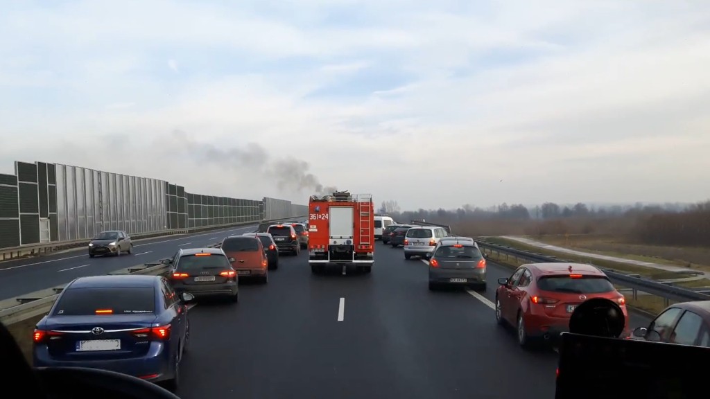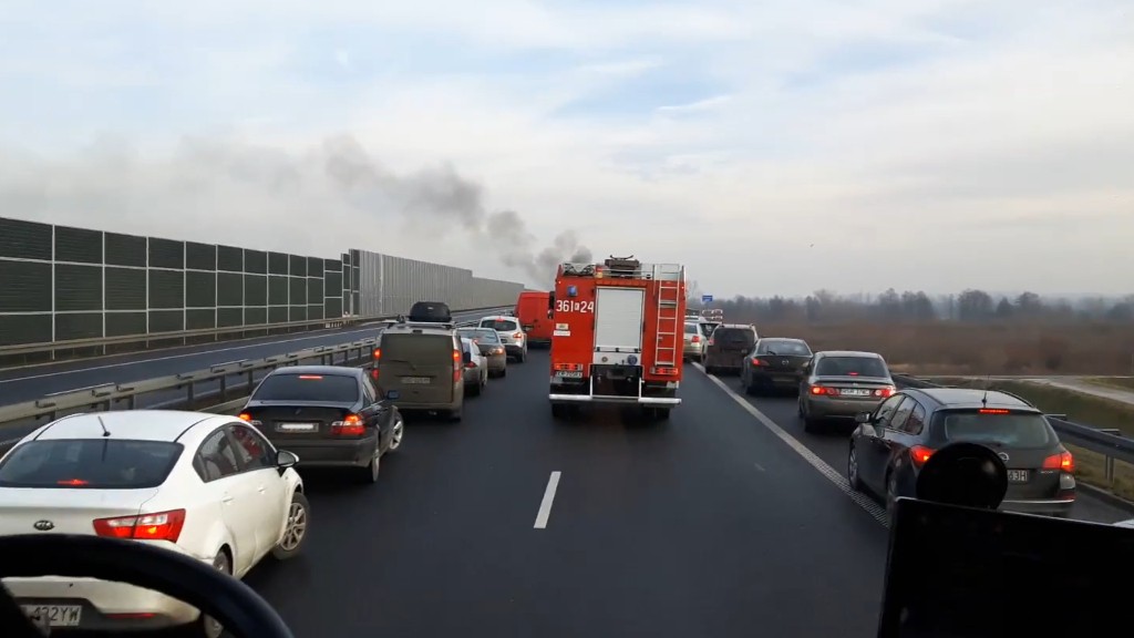 Kierujący pojazdami powinni umożliwić pojazdom uczestniczącym w akcji ratowniczej przejazd środkiem – poprzez zjazd z prawego pasa ku prawej krawędzi pasa i poprzez zjazd z lewego pasa ku jego lewej krawędzi. Na zdjęciu widzimy pojazdy zatrzymane pomiędzy pasami ruchu – na środku. Pojazd ratowniczy musi omijać je z prawej strony.
