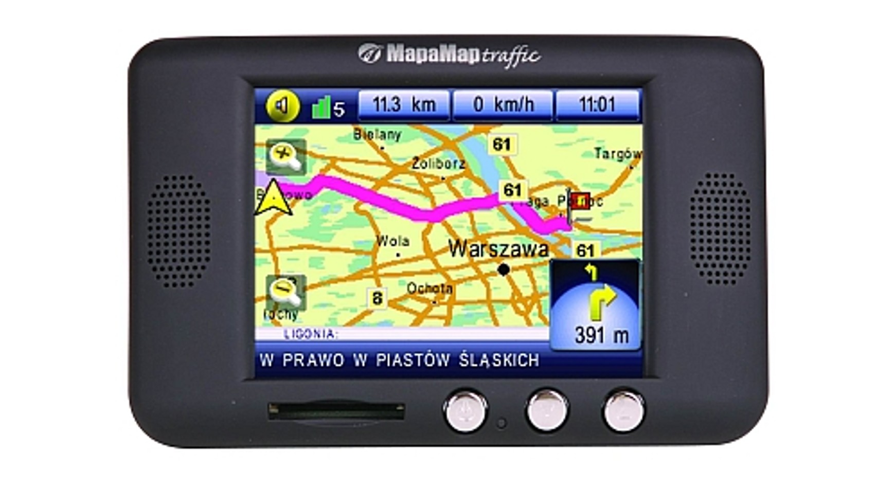 Ubezpieczenie Assistance realizowane jest przez firmę Inter Partner Assistance i jest gwarantowane przez 12 miesięcy na terenie Polski. Assistance MapaMap to pełna 24 godzinna gotowość Centrum Alarmowego do organizowania różnego rodzaju pomocy użytkownikowi MapaMap. szczegóły znajdziecie pod adresem www.mapamap.pl/index.php?go=assistance Urządzenie wyposażone jest w procesor SAMSUNG 266 MHz oraz GPS (z najnowszym chipsetem SiRF III), dzięki czemu nie ma potrzeby używania anteny zewnętrznej.3,5 calowy dotykowy wyświetlacz LCD firmy SAMSUNG zapewnia doskonałą widoczność nawet pod kątem 170°, a dwa głośniki 2W stereo umieszczone po obydwu stronach wyświetlacza powodują, że komunikaty głosowe są doskonale słyszalne, nawet gdy włączone jest radio czy odtwarzacz CD.W urządzeniu zainstalowane są najnowsze z końca września 2006, zawierające szczegółowe (z numerami domów) plany adresowe 1200 miejscowości oraz 72 tys. obiektów użytecznościpublicznej m.in. stacje benzynowe, stacje serwisowe, bankomaty, szpitale, przychodnie, centra handlowe, supermarkety, hotele, restauracje, atrakcje turystyczne.MapaMap traffic Polska umożliwia nawigację do dowolnego adresu, ulicy, miejscowości lub obiektu użyteczności publicznej. Mapy prezentowane są na ekranie w taki sposób jak kierowca widzi drogę. Dotarcie do celu ułatwiają komunikaty głosowe w 12 językach: polski, angielski, niemiecki, francuski, hiszpański, portugalski, włoski, duński, norweski, holenderski, szwedzki i fiński. Informują one o zbliżających się manewrach, co pozwala kierowcy skoncentrować się naprowadzeniu pojazdu i obserwowaniu drogi. Sugerowana cena detaliczna systemu MapaMap traffic Polska BLACK to 1399 zł (z VAT).