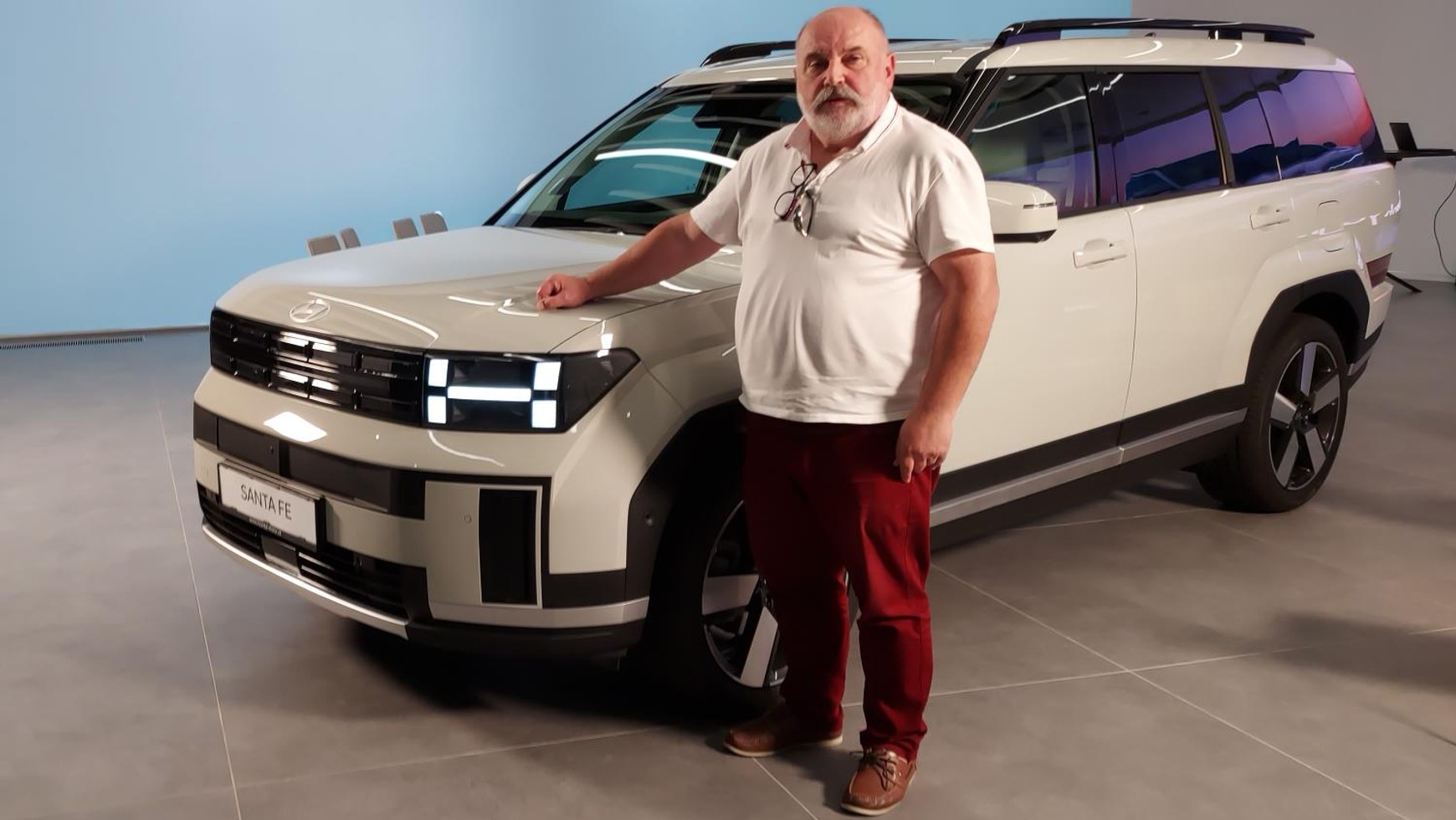 Światowa premiera nowego Hyundaia Santa Fe odbyła się w sierpniu 2023 r. i zaskoczyła wszystkich – piąta generacja koreańskiego SUV-a zrywa z dotychczasową stylistyką. Nowy Santa Fe ma pudełkowaty kształt karoserii, pionowy przód, pionowy tył i żadnych obłości czy aerodynamicznych przetłoczeń. Można tu podejrzewać inspirację Land Roverem Defenderem czy Discovery (ale przedostatniej 4. generacji, bo najnowszy Discovery już nie jest pudełkowaty).