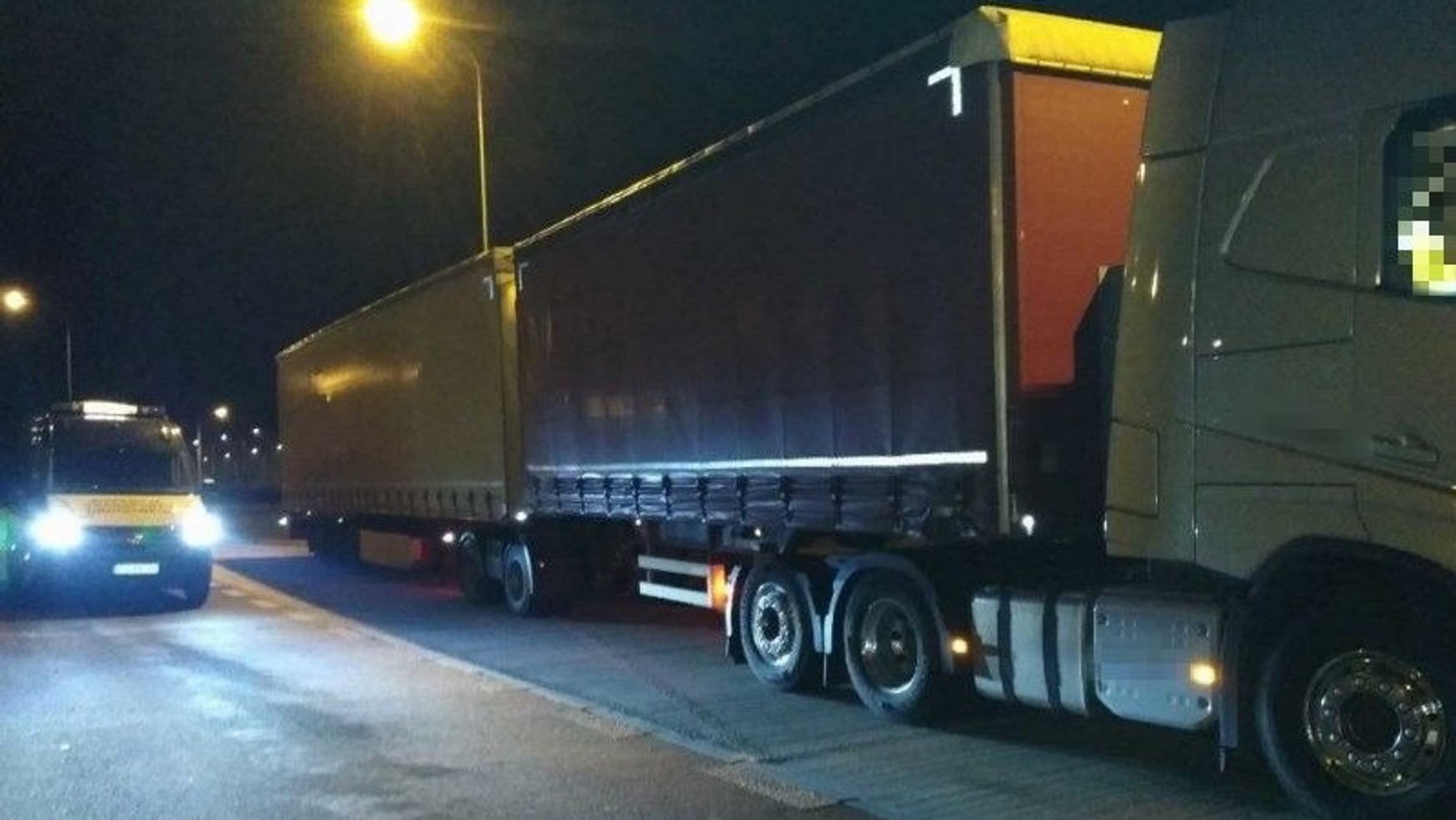 Nienormatywny zestaw składał się z ciągnika siodłowego i dwóch dużych naczep. Wiózł wiele różnego rodzaju towarów (pieluchy, mydło i rury metalowe) z Polski do Norwegii. Kontrola wykazała, że dopuszczalna długość została przekroczona aż o 8,74 m, a wysokość - o 14 cm. Masa całkowita również była daleka od dopuszczalnej – 60,9 zamiast 40 ton.