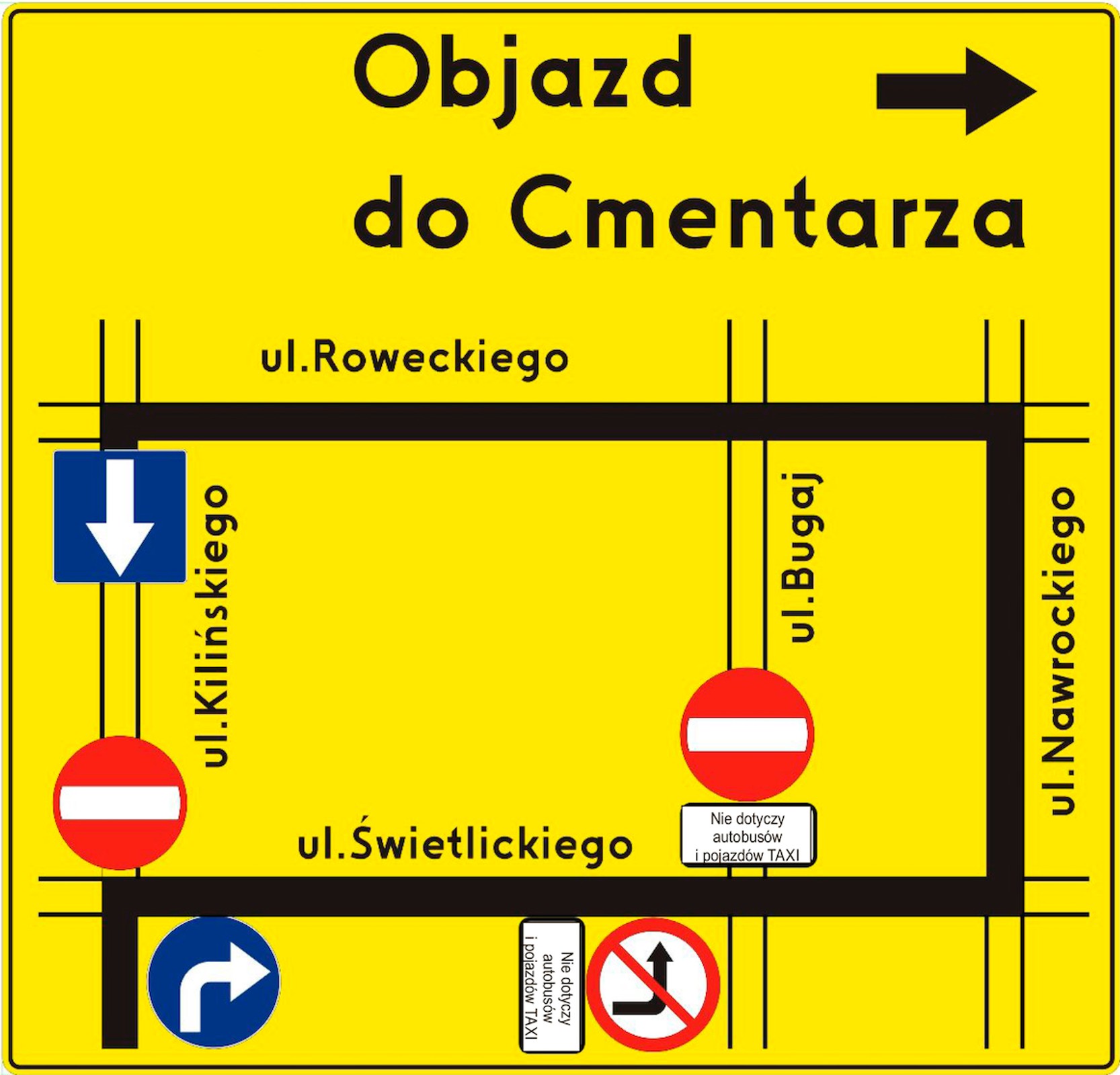 W wielu miejscach, szczególnie przy cmentarzach i na drogach do nich prowadzących, może zostać wprowadzona nowa, tymczasowa organizacja ruchu. Dlatego też nie jedź na pamięć i nie wjeżdżaj w ulicę, jeżeli tylko masz wątpliwości, czy możesz to zrobić. W okresie Wszystkich Świętych w pobliżu cmentarzy zazwyczaj jest wielu policjantów, których można zapytać o to, którędy możemy jechać i gdzie zaparkować nasze auto.