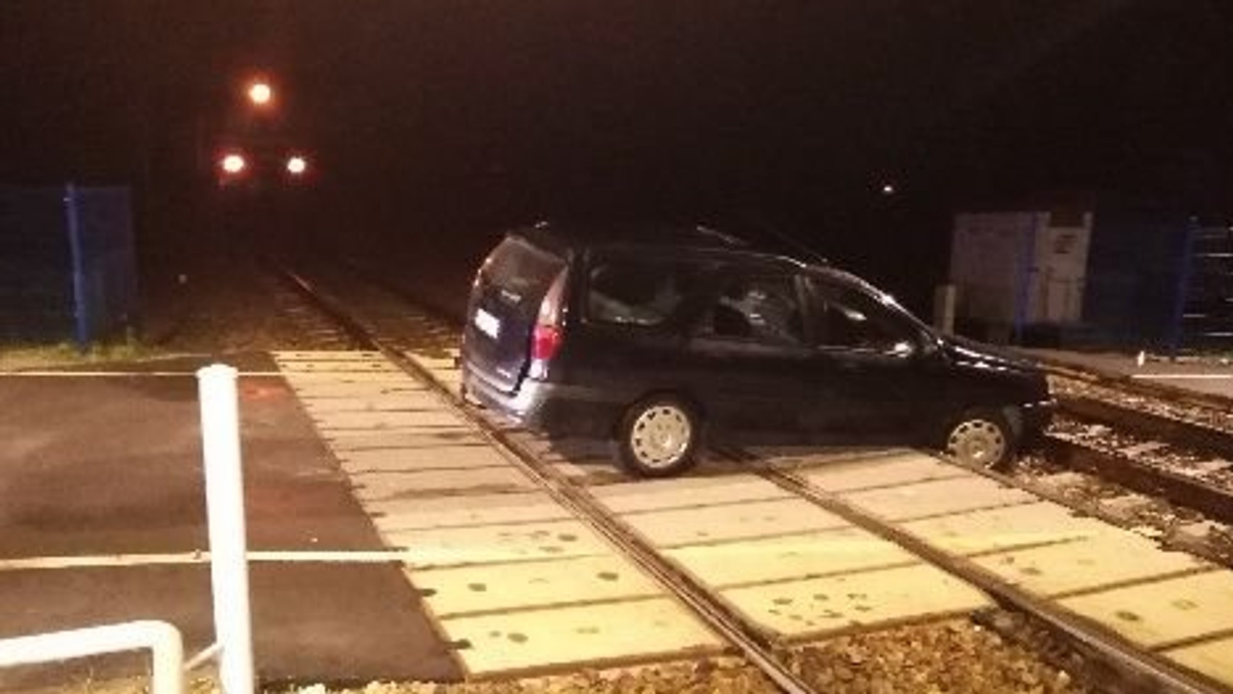 Z tych wszystkich ostrzeżeń nic sobie nie zrobił kierowca kombi marki Renault, który w nocy postanowił przejechać przez tory. Jak można było przypuszczać od samego początku, był to bardzo zły pomysł. Samochód zawiesił się na szynach, ponieważ zdemontowano betonowe płyty umożliwiające przejazd.