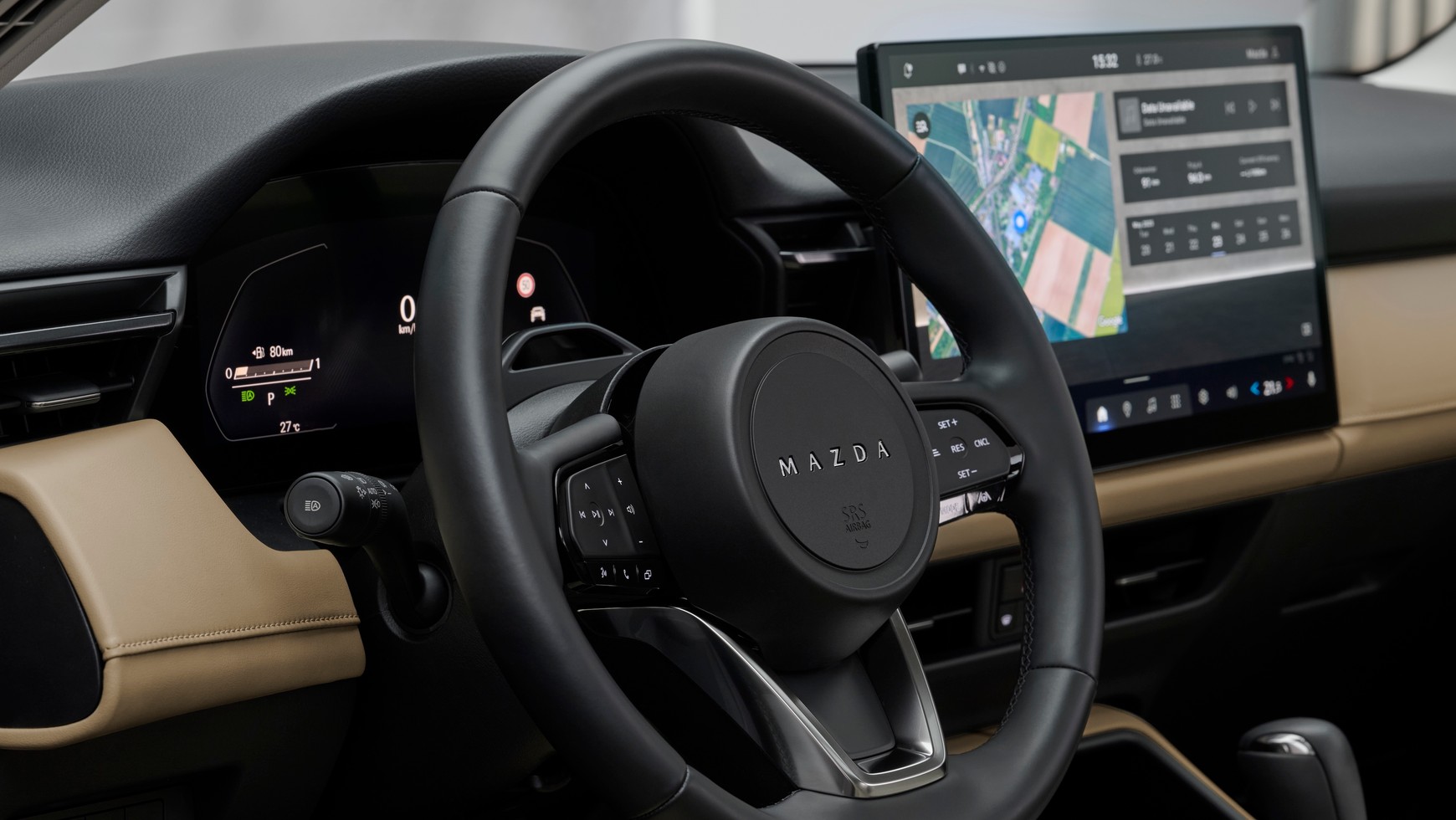 Mazda podkreśla, że mimo rezygnacji z pokrętła, nowy system pozostaje wierny idei skupienia kierowcy na drodze. Kluczowe funkcje pojazdu można obsługiwać na kilka sposobów, z naciskiem na przyciski na kierownicy oraz sterowanie głosowe. Osobne przyciski odpowiadają za kamerę 360 stopni, tryb M-Drive czy wybór źródła dźwięku, a informacje o aktualnym utworze pojawiają się na zegarach po każdej zmianie.