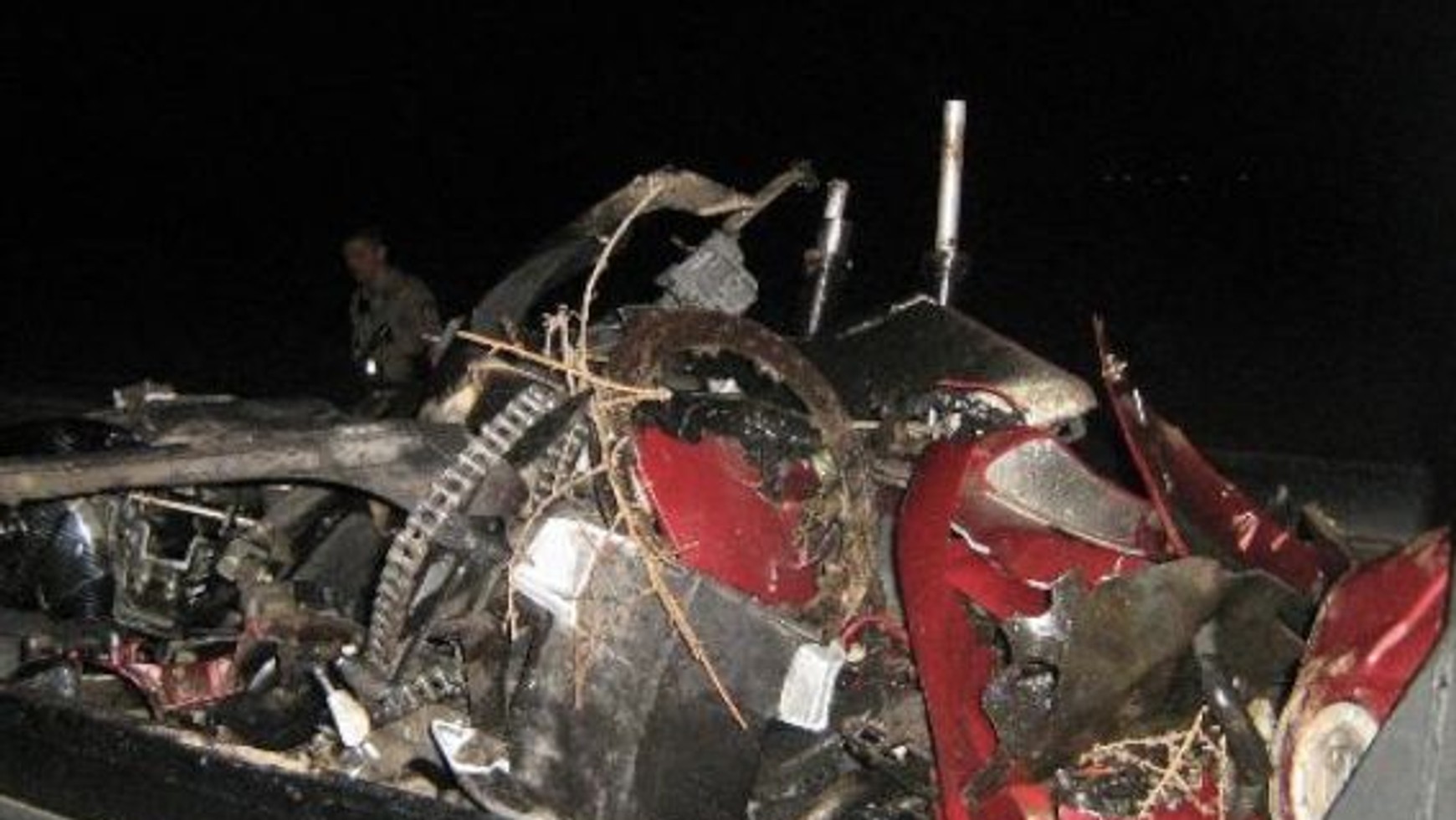 Sytuacja niemal jak z amerykańskiego filmu. Wszystko dzieje się 21 grudnia, tuż przed świętami Bożego Narodzenia. 19-letni Noe Marcos Calazo jedzie swoją Yamahą YZF rocznik 2004 (brak informacji czy była to Yamaha R1 czy R6). Chwilę przed "złapaniem" przez policję motocyklista podejrzewany o jazdę pod wpływem zjechał z drogi i po przejechaniu kilkuset metrów uderzył w słup sygnalizacji świetlnej. Jednoślad zanim uderzył w drewniany słupek wyskoczył w powietrze na ponad 5 metrów. Motocykl został doszczętnie zniszczony. W powietrze wystrzelił również kierowca motoru, który uderzył w ziemię po przeleceniu niemal 32 metrów. Calazo doznał rozległych obrażeń i w krytycznym stanie został przetransportowany do szpitala. Jak widać na zdjęciach przekazanych przez biuro szeryfa hrabstwa Pinal w Arizonie nawet polscy "specjaliści" mieli by problem z odbudowaniem motocykla.