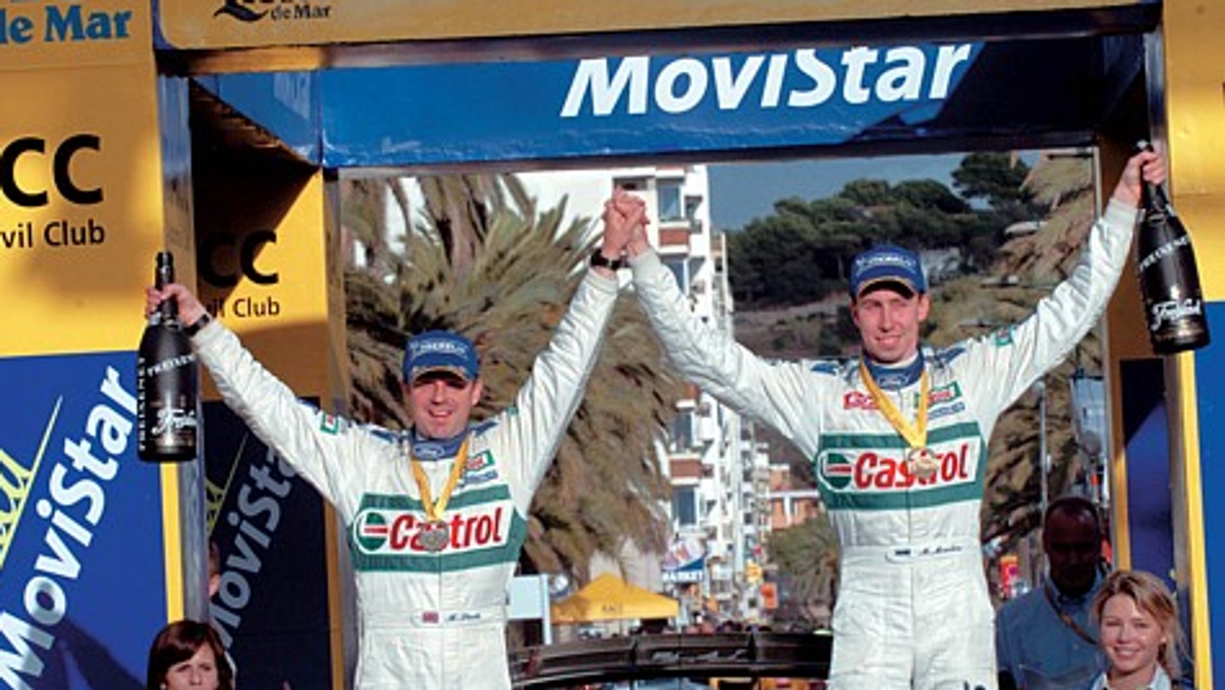 Belg nawet przez pewien moment prowadził w zawodach. Niestety, berdzo pechowy okazał się dla niego ostatni odcinek specjalny piątkowego etapu. Duval urwał koło w swym Focusie, stracił sporo czasu i w rezultacie wycofał się z rajdu. Po sześciu pierwszych oesach prowadził Sebastien Loeb przed Markko Märtinem, Marcusem Grönholmem i Carlosem Sainzem.Już na początku kolejnego etapu z walki odpadł świeżo upieczony mistrz świata. Przyczyną wycofania się Loeba było uszkodzenie miski olejowej. To dopiero drugi rajd, którego Francuz nie ukończył.Na pozostałych odcinkach specjalnych Märtinowi pozostawało już tylko kontrolowanie uzyskanej przewagi. Po drugim dniu zawodów było to blisko 40 sekund. Dzięki swemu drugiemu zwycięstwu z kolei, a trzeciemu w bieżącym roku Estończyk bardzo się zbliżył do zajmującego w klasyfikacji mistrzostw drugą pozycję Pettera Solberga. Walka o tytuł wicemistrzowski na szutrach Australii zapowiada się bardzo ciekawie.Znakomicie w Katalonii spisali się kierowcy ekipy Mitsubishi. Daniel Sola zajął szóste, a Gigi Galli siódme miejsce. Na dwunastej pozycji metę osiągnął lider teamu Gilles Panizzi. Słowa uznania należą się także Francuzowi Stephane'owi Sarrazinowi. Ten były specjalista od wyścigów samochodowych na prywatnym Subaru Imprezie WRC wywalczył wysokie, czwarte miejsce.W Hiszpanii zakończono rywalizację w kategorii Junior. Na asfaltach Katalonii najszybszy był Francuz Nicolas Bernardi (Renault Clio S1600). Najbardziej jednak na mecie cieszył się Per-Gunnar Andersson (Suzuki Ignis S1600). Drugie miejsce dało mu tytuł mistrzowski. Ogromne szanse na końcowe zwycięstwo miał Guy Wilks, który prowadził w klasyfikacji przed hiszpańską rundą. Brytyjczyk po drugim etapie zajmował trzecie miejsce i gdyby je utrzymał do mety, zostałby mistrzem. Niestety, ostatniego dnia rajdu wypadł z trasy i zaprzepaścił wszelkie nadzieje na życiowy sukces.W Rajdzie Katalonii wystartowało także kilka pojazdów grupy N. Najlepszym kierowcą w tej klasyfikacji w Hiszpanii okazał sie Mattias Ekström (Mitsubishi Lancer Evo VIII). Szwed to aktualny mistrz prestiżowej serii wyścigowej DTM. Radzi on sobie równie dobrze na rajdowych trasach. Wcześniej wygrał klasyfikację samochodów produkcyjnych w swym rodzinnym Rajdzie Szwecji.Klasyfikacja kierowców (pkt):1. Sebastien Loeb - 108 2. Petter Solberg - 82 3. Markko Märtin - 79 4. Carlos Sainz - 73 5. Marcus Grönholm - 62 6. Franc?ois Duval - 477. Mikko Hirvonen - 248. Harri Rovanperä - 20