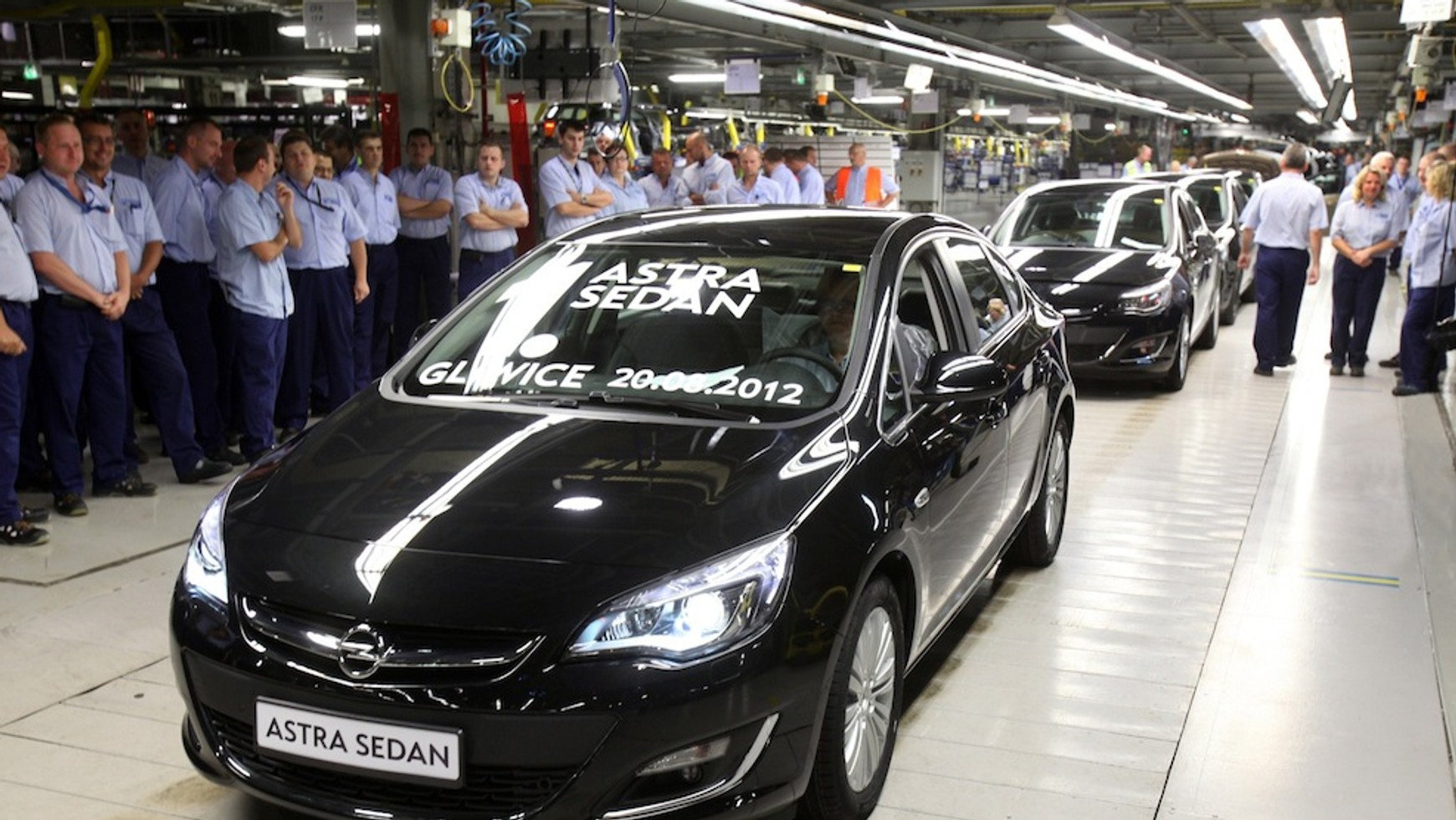Pierwsza z linii montażowej zjechała Astra Sedan w kolorze Phantom Grey, z benzynowym silnikiem 1.4 turbo o mocy 140KM i sześciostopniową skrzynią biegów. Auto trafi na rynek niemiecki. To już drugie w tym roku, po Astrze OPC, uruchomienie nowego modelu w gliwickiej fabryce, specjalizującej się w produkcji kompaktowych samochodów z linii Astry.