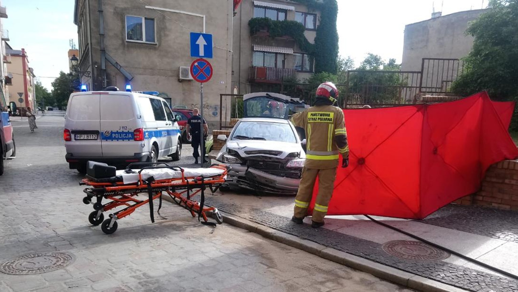 W dniu 18 lipca 2022 r. o godzinie 7:36 do Stanowiska Kierowania Komendanta Powiatowego Państwowej Straży Pożarnej w Brzegu wpłynęło zgłoszenie o wypadku z udziałem samochodu osobowego. Do zdarzenia dyżurny zadysponował 2 zastępy. Po przybyciu na miejsce zdarzenia w wyniku przeprowadzonego rozpoznania wstępnego stwierdzono, że samochód osobowy Opel Astra uderzył w ścianę kościoła. W wyniku wypadku poszkodowana została jedna osoba (kierowca), u której doszło do zatrzymania krążenia. Po przywróceniu kobiecie przez ratowników funkcji życiowych, została ona przetransportowana śmigłowcem LPR do szpitala.