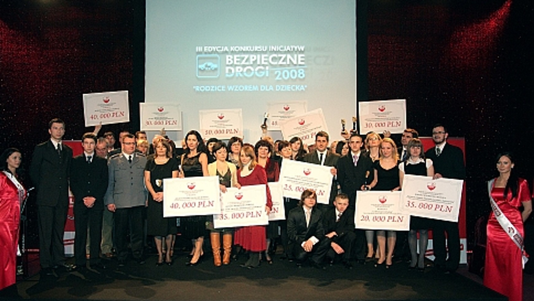 Oto pełna lista nagrodzonych w III edycji Konkursu Inicjatyw „Bezpieczne Drogi": NAGRODA OGÓLNOPOLSKA I miejsce: „Europejska noc bez wypadku"; Fundacja „Krzyś" (50 tys. zł) - za ograniczanie liczby nietrzeźwych kierowców. II miejsce: „Kampania społeczna bezpieczny przejazd - zatrzymaj się i żyj"; PKP Polskie Linie Kolejowe S.A. (40 tys. zł) - za kształtowanie zachowań kierowców, pieszych, rowerzystów na skrzyżowaniach dróg kołowych z liniami kolejowymi. III miejsce: „Widoczny rowerzysta - uczyć, a nie karać"; Centrum Bezpieczeństwa Ruchu Drogowego w Łodzi (30 tys. zł) - za walkę o poprawę bezpieczeństwa rowerzystów oraz pośrednio - pozostałych uczestników ruchu drogowego. NAGRODA REGIONALNA I miejsce: „Wyjście z ciszy Tobie z pomocą"; Automobilklub Mielecki (40 tys. zł) - za łagodzenie barier w komunikowaniu się z osobami głuchoniemymi i niesłyszącymi oraz nauczanie technik pierwszej pomocy. II miejsce: „Wioska rowerowa - jak być bezpiecznym rowerzystą"; Urząd Gminy Zawady (30 tys. zł) - za stworzenie w parku wiejskim placu rowerowego wraz z magazynem sprzętu. III miejsce: „Na wszelki wypadek"; TER Enterprises - Biuro Obsługi Szkód Powypadkowych (20 tys. zł) - za podjęcie problemu prawnej prewencji przed i powypadkowej. NAGRODA LOKALNA I miejsce: „Młodzi bezpieczni do kwadratu", Zespół Szkół Ogólnokształcących w Wydminach (40 tys. zł) - za Integrację środowiska lokalnego na rzecz poprawy bezpieczeństwa ruchu drogowego. II miejsce: „Stryszowianin w trosce o bezpieczeństwo"; Fundacja Stryszowianin (30 tys. zł) - za rozpoznanie potrzeb, zmiany w organizacji ruchu za pomocą nowych znaków i akcje uświadamiające III miejsce: „Bezpiecznie z nami i wokół nas"; Zespół Oświatowy wMysłowie - Gimnazjum w Mysłowie (20 tys. zł) - za zwrócenie uwagi uczniów, rodziców, nauczycieli i środowiska lokalnego, na to, że nie tylko „inni" są sprawcami wypadków. NAGRODA SPECJALNA - RODZICE WZOREM DLA DZIECKA I „Mamo, tato - chcę być bezpieczny na drodze"; Zespół Szkół nr 5 w Krakowie (35 tys. zł) - za uświadamianie uczniów i ich rodziców zagrożeń płynących z niewłaściwego przewożenia małych dzieci w samochodzie. II „Rodzice dobrze postępują, dzieci naśladują"; Specjalny Ośrodek Szkolno-Wychowawczy w Miłakowie (35 tys. zł) - za edukację, dotyczącą zasad ruchu drogowego wśród uczniów placówki, którzy są upośledzonych umysłowo, a także ich rodziców i nauczycieli NAGRODA SPECJALNA - RATOWNICTWO/PIERWSZA POMOCKodeks drogowy; Zarząd rejonowy Polskiego Czerwonego Krzyża w Ostrowcu Świętokrzyskim (25 tys. zł) - za zajęcia prowadzone przez młodzież w przedszkolach, szkołach i świetlicach środowiskowych, z zakresu bezpieczeństwa i pierwszej pomocy. NAGRODA SPECJALNA - NIEPEŁNOSPRAWNI UCZESTNICY RUCHU DROGOWEGO „Niepełnosprawni - widoczni, bezpieczni"; Fundacja Pomagam - Katarzyna Dorosz (25 tys. zł) - za wydanie ogólnopolskiego katalogu "Jestem widoczny -jestem bezpieczny" oraz dystrybucję kamizelek i świateł odblaskowych dla dzieci niepełnosprawnych, ze Szkół Specjalnych oraz osób starszych, emerytów i rencistów. NAGRODA SPECJALNA - DZIAŁANIA EDUKACYJNE „Lubuski konkurs wiedzy o bezpieczeństwie w ruchu drogowym - W Europie jeździmy bezpiecznie"; Stowarzyszenie na rzecz bezpieczeństwa dzieci i młodzieży w Zielonej Górze (25 tys. zł) - za konkurs, którego celem jest podnoszenie poziomu wiedzy i umiejętności w zakresie edukacji komunikacyjnej oraz rozwijanie wśród młodzieży szkolnej świadomości bezpiecznego uczestnictwa w ruchu drogowym. NAGRODA SPECJALNA - NIECHRONIONY UCZESTNIK RUCHU DROGOWEGO „Drogi rowerowe przy każdej drodze"; Stowarzyszenie Federacja Zielonych w Białymstoku (25 tys. zł) - za popularyzację budowy traktów rowerowych, również w centrach miast NAGRODA SPECJALNA - DZIAŁANIA INSTYTUCJONALNE „Przebudowa dróg gminnych nr 43 i nr 345, w celu wykonania objazdu, szczególnie dla rowerzystów"; Gmina Radwanice (25 tys. zł) - za przebudowę lokalnej drogi i dostosowanie jej do potrzeb mieszkańców i ich bezpieczeństwa.