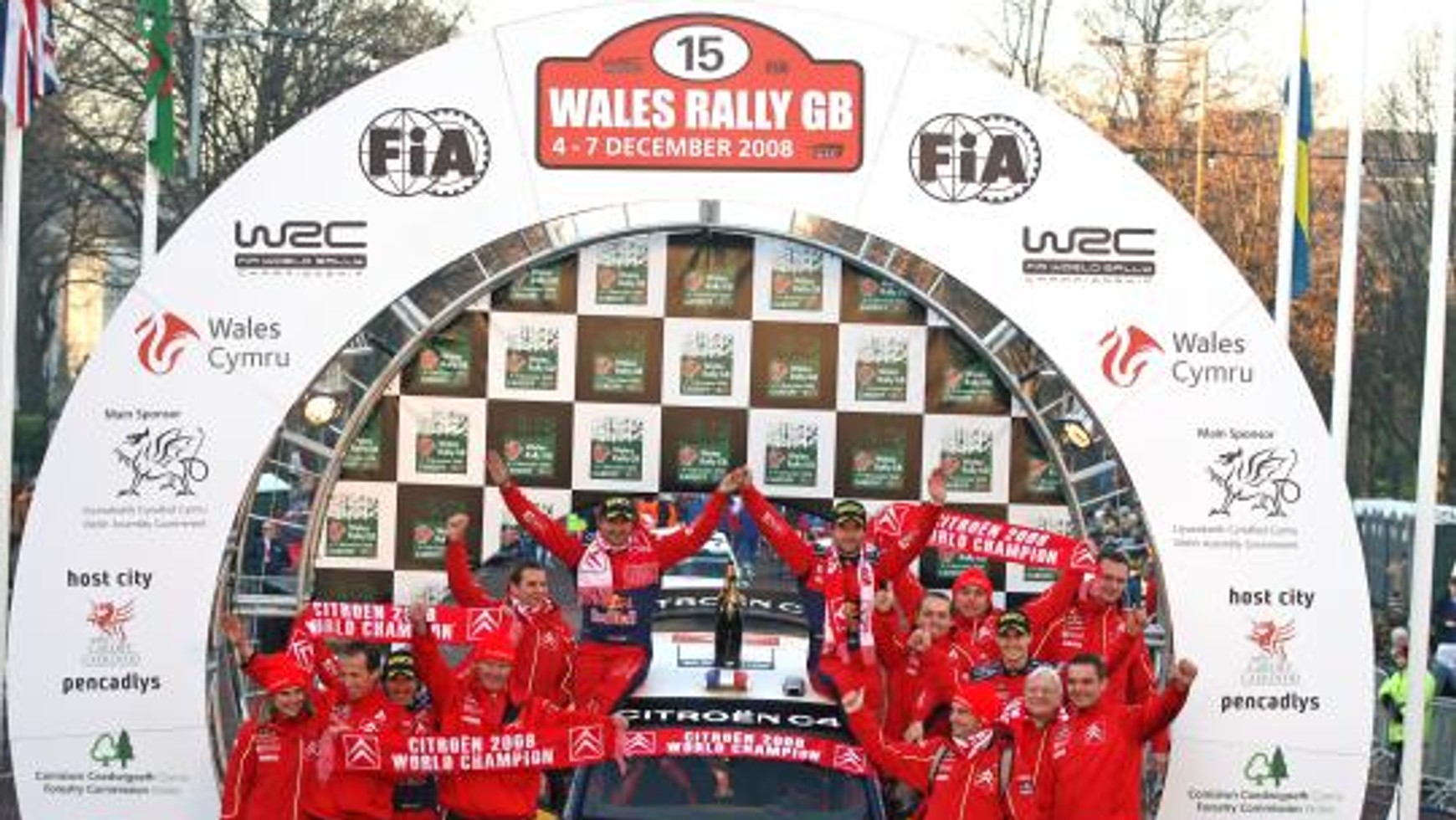 Wcześniejsze tytuły francuskiej marki to lata 2003, 2004 i 2005. Rok 2006 i 2007 należał do Forda.Zajmując w Walii 1 i 3 miejsce, załogi Citroëna - Sébastien Loeb/Daniel Elena i Dani Sordo/Marc Martí, obronili posiadaną przez zespół przewagę punktową, dającą zwycięstwo w obydwu kategoriach (Loeb ma na koncie piąty z rzędu tytuł mistrza świata - zapewnił go sobie ponad miesiąc temu na mecie Rajdu Japonii).Drugie miejsce w Wielkiej Brytanii wywalczył Fin Jari-Matti Latvala za kierownicą Forda Focusa WRC. Wicemistrzem świata zaś jest jego rodak i kolega z zespołu Forda - Mikko Hirvonen.Nie było lekko - paskudna pogoda i zdradliwe odcinki specjalne dały kierowcom w kość…"Po zdobyciu wraz z Danielem piątego indywidualnego Mistrzostwa Świata, z radością jechałem dla zespołu, by przyczynić się do wygranej Citroëna wśród konstruktorów. Udało nam się i jest to wspaniała nagroda dla wszystkich, którzy pracowali na ten sukces przez cały rok. Cieszę się tym bardziej, że nie jechaliśmy z wyrachowaniem tylko po potrzebne punkty, lecz przy okazji także wygraliśmy niezmiernie trudny rajd. Trudny i bardzo niebezpieczny, z winy przepisów, które zakazywały przejazdów zerówek (zawodnicy otwierający stawkę, którzy dostarczają zespołom fabrycznym informacji o warunkach na trasie) i użycia opon innych niż szutrowe. Uniknięcie pułapek i ukończenie rajdu przed naszym głównym rywalem sprawia nam ogromną satysfakcję!” - powiedział Sébastien Loeb, rajdowy mistrz świata 2008.Loeb jest pierwszym zawodnikiem francuskim, który wygrał Rajd Wielkiej Brytanii. Na ostatnim odcinku specjalnym Francuz pokonał o 4,9 s prowadzącego w imprezie Fina Jari-Matti Latvalę (Ford Focus WRC).Loeb i Elena ustanowili nowy rekord pod względem liczby rund zwycięskich w jednym sezonie - francuski duet w 2008 r. wygrał 11 spośród 15 imprez zaliczanych do klasyfikacji mistrzostw.Loeb jest pierwszym zawodnikiem francuskim, który wygrał Rajd Wielkiej Brytanii. Na ostatnim odcinku specjalnym Francuz pokonał o 4,9 s prowadzącego w imprezie Fina Jari-Matti Latvalę (Ford Focus WRC).Loeb i Elena ustanowili nowy rekord pod względem liczby rund zwycięskich w jednym sezonie - francuski duet w 2008 r. wygrał 11 spośród 15 imprez zaliczanych do klasyfikacji mistrzostw.Wyniki Rajdu Wielkiej Brytanii:1. Sebastien Loeb (Francja/Citroen C4) - 2:43.19,62. Jari-Matti Latvala (Finlandia/Ford Focus) - strata 2,73. Dani Sordo-Marc Marti (Hiszpania/Citroen C4) - 1.10,64. Petter Solberg (Norwegia/Subaru Impreza) - 1.49,65. Per-Gunnar Andersson (Szwecja/Suzuki SX4) - 3.54,16. Francois Duval (Belgia/Ford Focus) - 4.57,87. Toni Gardemeister (Finlandia/Suzuki SX4) - 5.15,08. Mikko Hirvonen (Finlandia/Ford Focus) - 5.28,89. Matthew Wilson (Wielka Brytania/Ford Focus) - 8.03,910. Barry Clark (Wielka Brytania/Ford Focus) - 9.43,1Klasyfikacja końcowa kierowców w sezonie 2008:1. Sebastien Loeb (Francja) - 122 punktów2. Mikko Hirvonen (Finlandia) - 1033. Dani Sordo (Hiszpania) - 654. Jari-Matti Latvala (Finlandia) - 585. Chris Atkinson (Australia) - 506. Petter Solberg (Norwegia) - 467. Francis Duval (Belgia) - 258. Henning Solberg (Norwegia) - 229. Giggi Galli (Włochy) - 1710. Mattew Wilson (Wielka Brytania) - 15Klasyfikacja producentów w sezonie 2008:1. Citroen - 191 punktów2. Ford - 1733. Subaru - 984. Stobart-Ford - 675. Suzuki - 346. Munchi's-Ford - 22