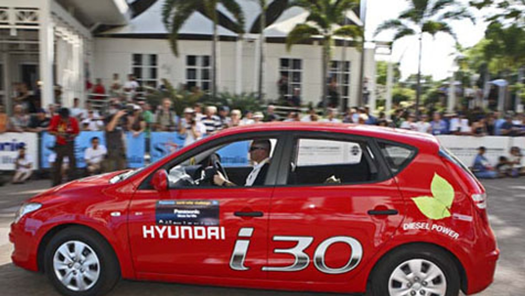 6 CRDi w wyścigu Panasonic World Solar Challenge, który odbył się w zesz≥ym miesiącu w Australii. i30 pokonał innych konkurentów wyposażonych w jednostki wysokoprężne i silniki hybrydowe, uzyskując najniższe spalanie oraz najniższy poziom emisji szkodliwych gazów do atmosfery. Startujący w klasie Greenfleet Technology Class i30 CRDi zużył zaledwie 3,2 litra oleju napędowego na 100 km i wydzielił 97 g CO2 na każdy przebyty kilometr trasy z Darwin do Adelaide liczącej w sumie 3000 km. Wynik ten pozwolił pokonać nie tylko hybrydową Toyotę Prius, ale także inne auta z silnikami diesla, takie jak Audi, Peugeot, a nawet motocykl BioBike. Dla porównania, Leaseplan Toyota Prius zużyła 5,6 litra paliwa na 100 km i wydzieliła 146g CO2 na jeden kilometr. Peugeot 207 HDi spalił 3,9 litra oleju napędowego na 100 km i wydzielił 118g CO2 na jeden kilometr. Co ciekawe, Team Ethanol Saab BioPower zużył 9,3 litra paliwa na 100 km i oddał do atmosfery 148g CO2 na jeden kilometr.źródło: Hyundai