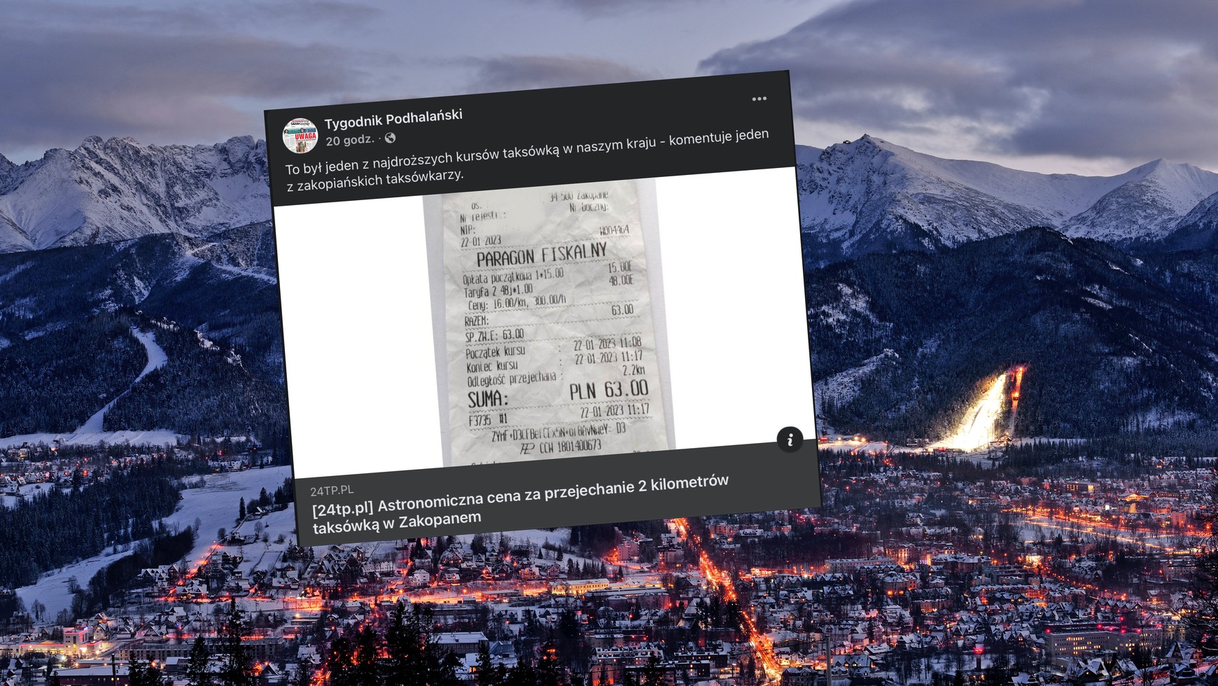 Zakopane jest nie tylko stolicą Tatr, lecz także jedną z najdroższych polskich miejscowości wypoczynkowych. Co rusz goście odwiedzający to miejsce w okresie wzmożonego ruchu turystycznego podają przykłady wysokich cen niektórych usług. O ile przeważnie mowa o paragonach grozy związanych z gastronomią, chociaż ostatnio furorę robi toaleta, za skorzystanie, z której trzeba zapłacić 10 zł, to tym razem na czoło wybił się przejazd taksówką.