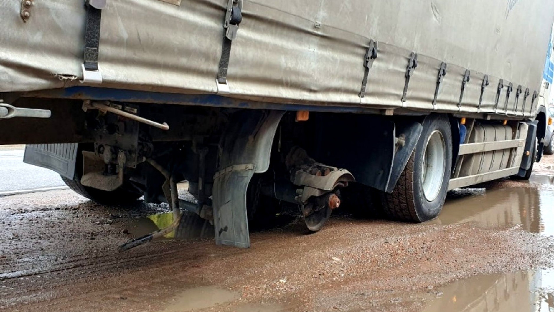 Funkcjonariusze kontrolujący drogę krajową nr 7 zauważyli ciężarówkę marki Volvo poruszającą się na trasie z Tarczyna do Warszawy. Nie byłoby w tym nic dziwnego, gdyby nie fakt, że pojazdowi brakowało prawego koła na ostatniej osi. Kierowca został niezwłocznie zatrzymany.
