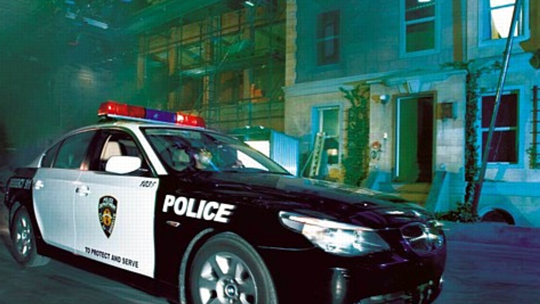 "Akcja!" BMW serii 5 wkracza na plan. Inscenizowany pościg za bandytami rozgrywa się na ulicach Brooklynu (stąd takie barwy policyjnych BMW), choć wszystko dzieje się w bawarskim miasteczku filomowym.