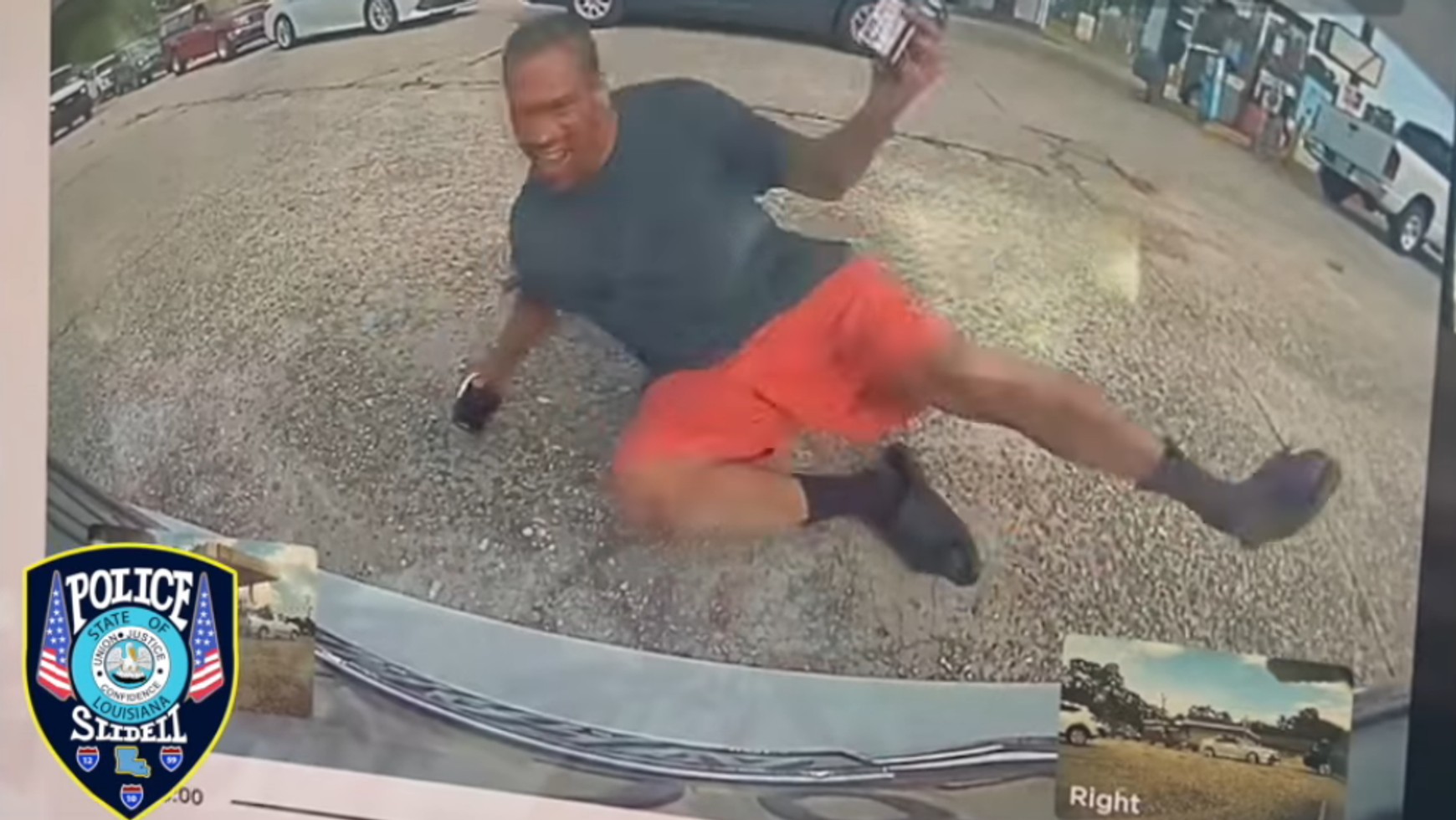 Kierowca Tesli w Slidell, w stanie Luizjana, cofał swoim samochodem, kiedy zauważył idącego nieopodal mężczyznę. Bez przeszkód zahamował przed pieszym, lecz mężczyzna zasymulował zderzenie z autem. Prowadzący pojazd od początku był świadomy, że stał się świadkiem próby wymuszenia odszkodowania. Po wyjściu z auta, strącił nogę oszusta ze zderzaka, po czym oddalił się swoją Teslą.