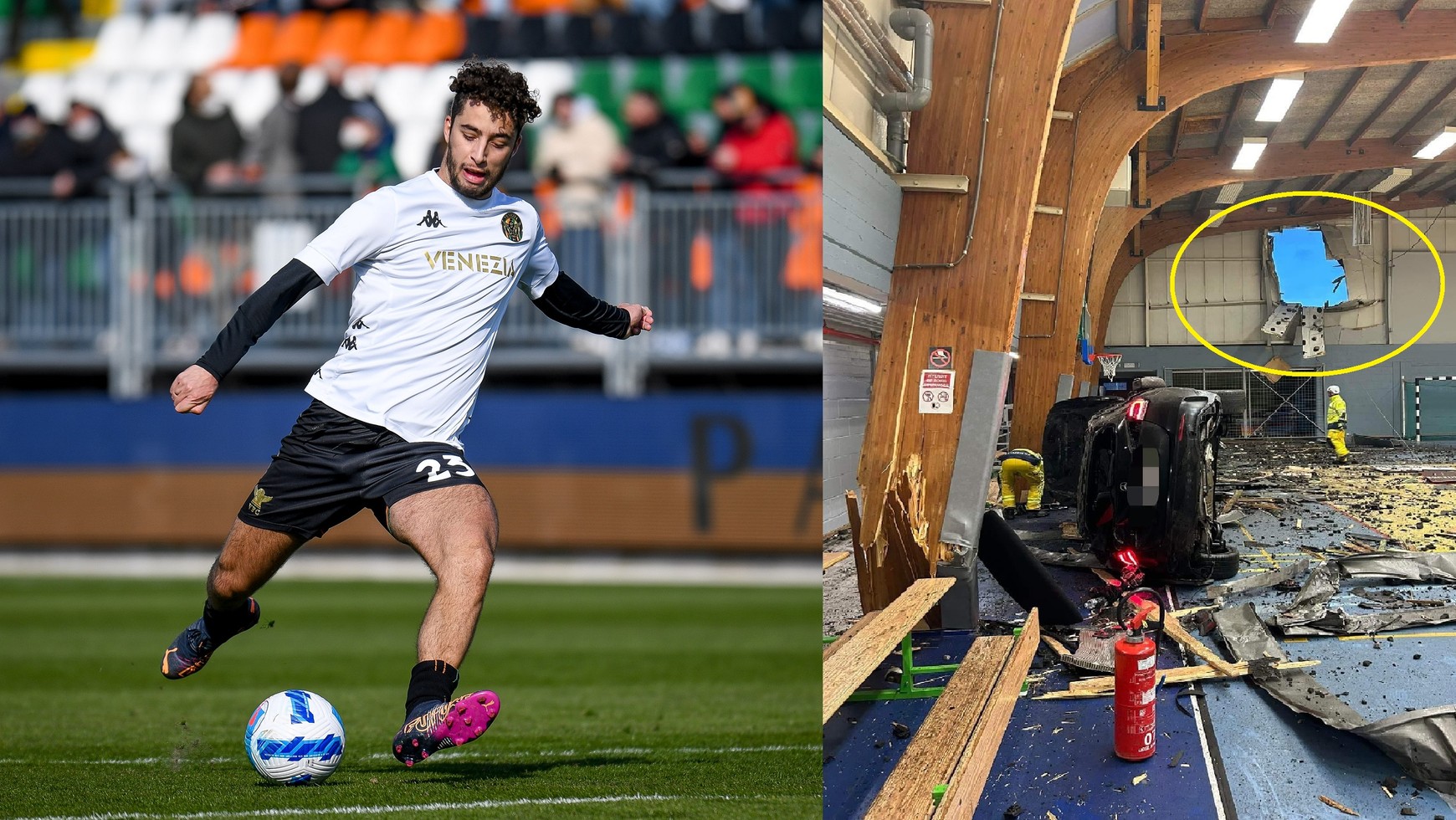 Jak wyszła z tego hala? Została wyłączona z użytku i czeka ją poważny remont, bo lecące auto uderzyło w jeden z drewnianych słupów podtrzymujących konstrukcję. Na szczęście, w momencie lądowania samochodu nikt nie znajdował się na boisku, więc nie doszło do tragedii. Poturbował się tylko sam Kiyine. Klub, w którego barwach teraz występuje, przekazał, że został przewieziony do szpitala i jego życiu nie zagraża niebezpieczeństwo.