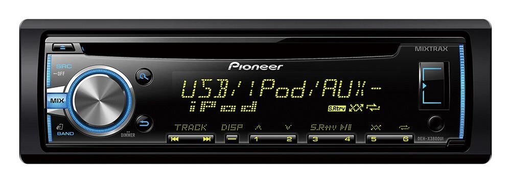 Funkcja Pioneer MIXTRAX będzie Twoim osobistym DJem podczas jazdy, miksując utwory i dodając do nich DJskie efekty. Możesz także włączyć efekty podświetlenia, które będą pracować w rytm utworu. Funkcja MIXTRAX jest dostępna w modelach: DEH-X3800UI, DEH-X5800BT, DEH-X6800DAB i MVH-X380BT.